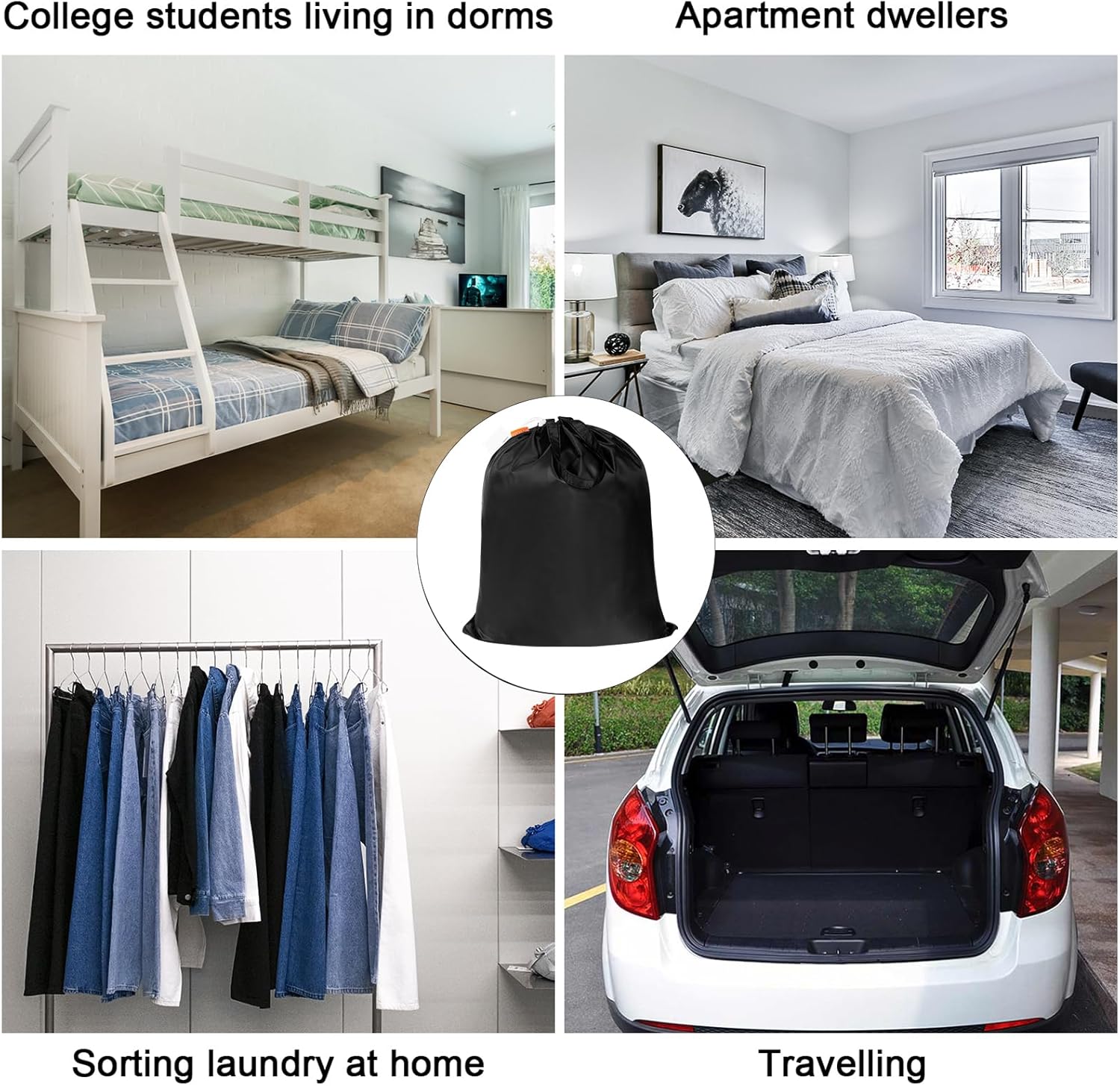 Polecasa Small Heavy Duty Laundry Bag with 130gsm Tear Resistant Fabric and Handles, Easy to Carry Durable Dirty Clothes Drawstring Bag, Perfect for College Dorm, Travel 21”x24”,Black