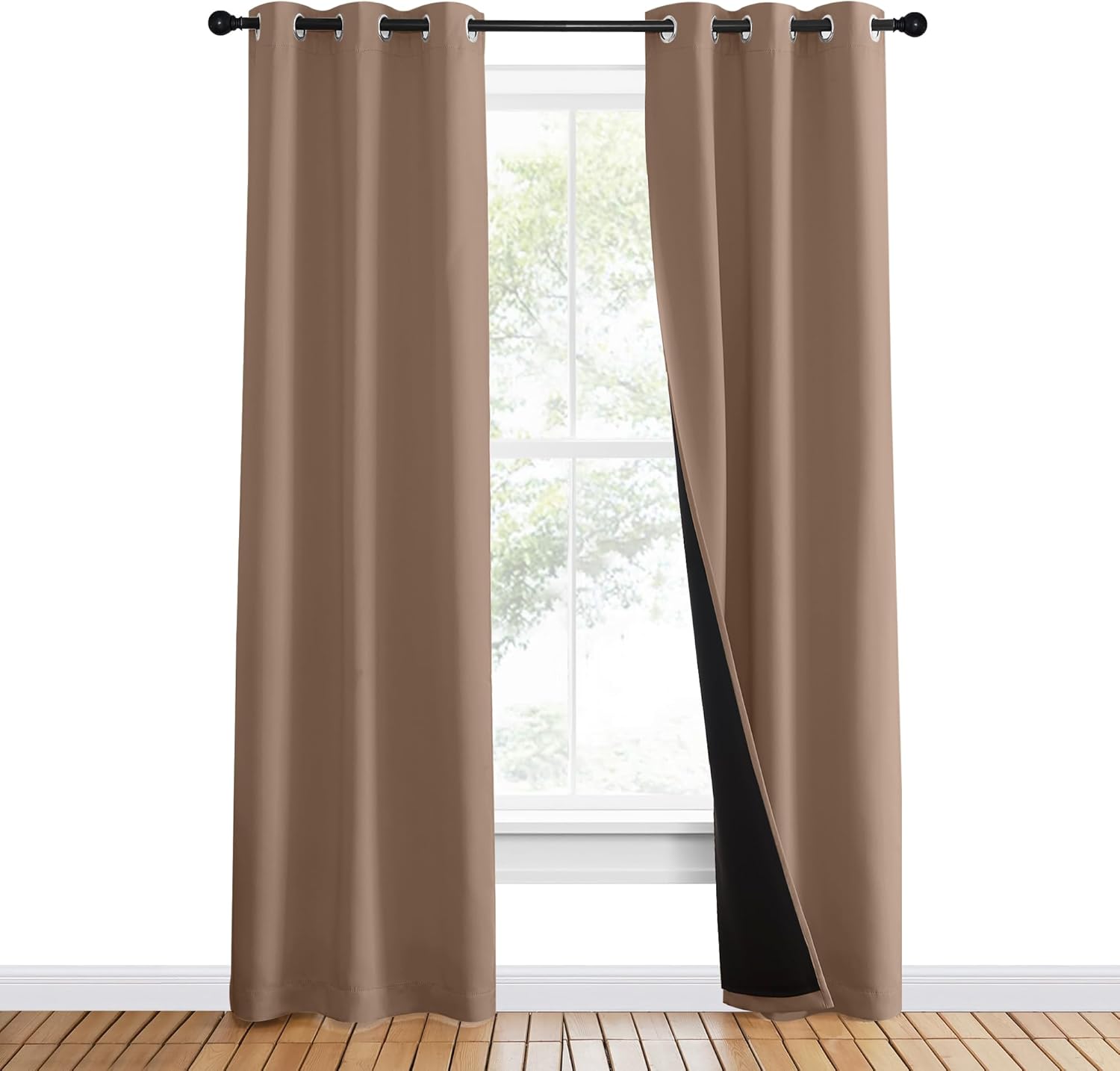 NICETOWN 100% Blackout Curtains Thermal, Noise Reduction and Privacy Curtains for Patio Door, Black Lined Blackout Drapes with Grommet Top, Cappuccino, 1 Pair, W37 x L80