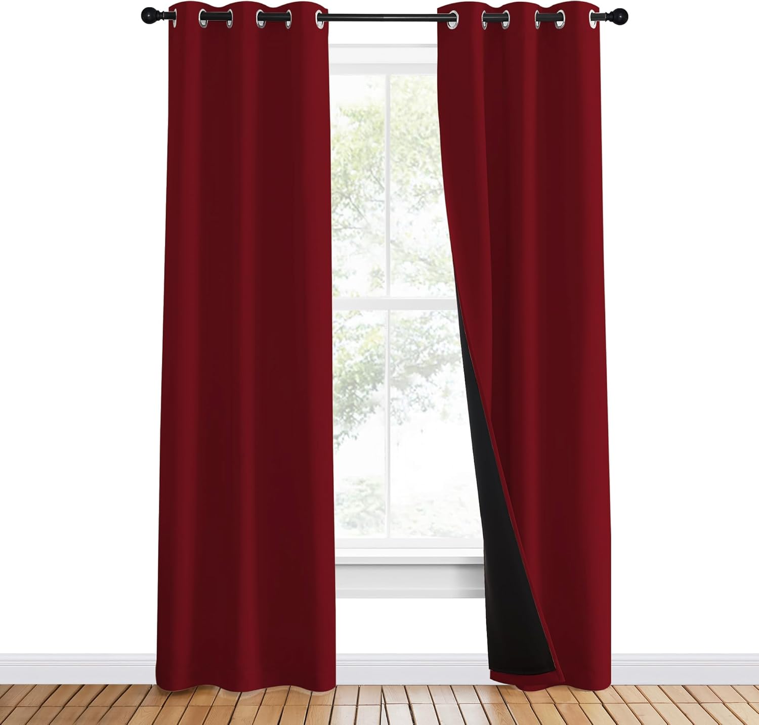 NICETOWN 100% Blackout Curtains with Black Liner Backing, Thermal Insulated Curtains for Living Room, Noise Reducing Drapes for Christmas, Burgundy Red, 37" x 80" Per Panel, Set of 2
