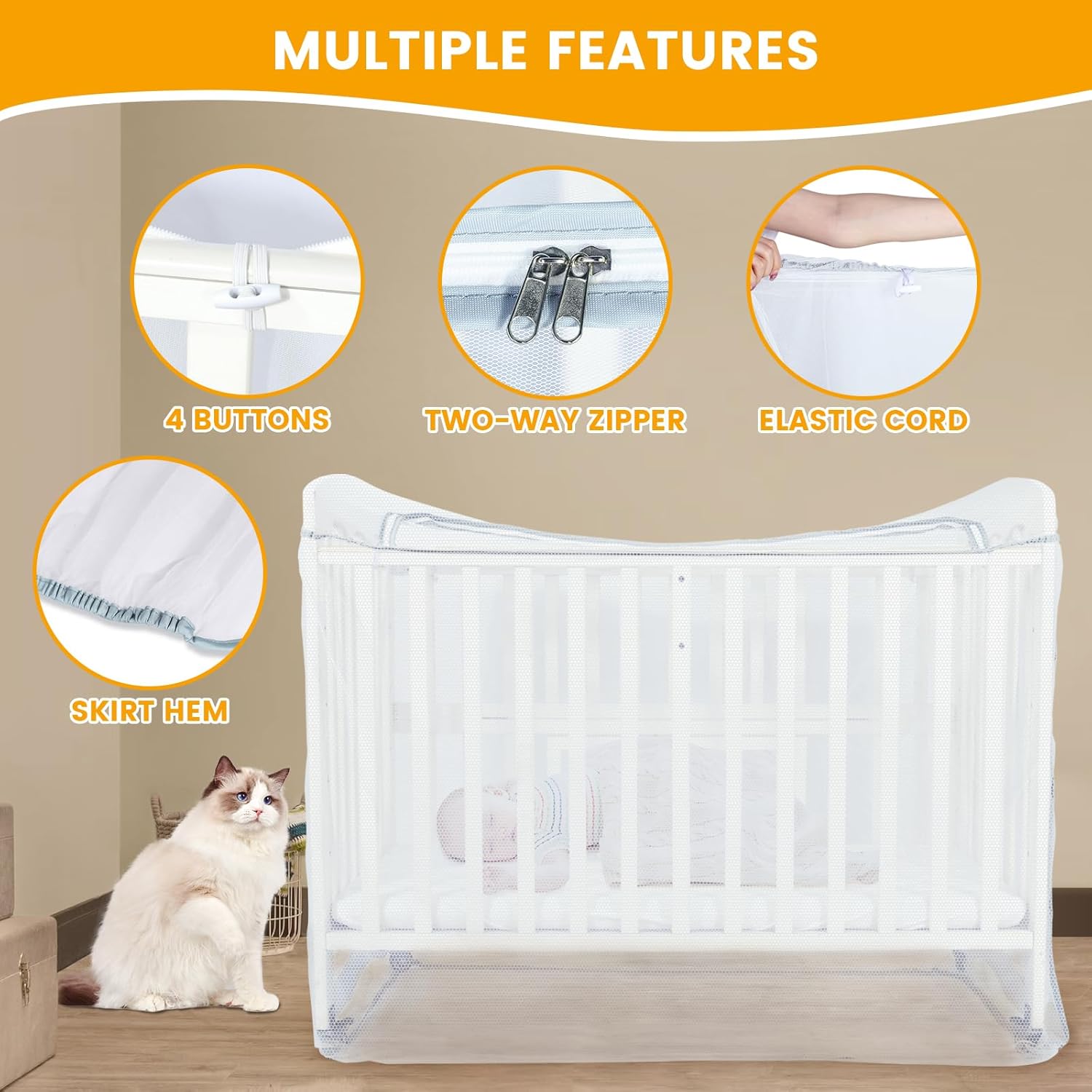 - ๐ญ๐๐ฃ๐ฃ๐๐ฅ ๐๐๐๐ฆ๐๐๐ก: Orzbow Crib Mosquito Net semi-circular, two-way zippered opening is designed to provide quick and easy access for baby. Besides, reinforced side buckles prevent the mosquito net from slipping out