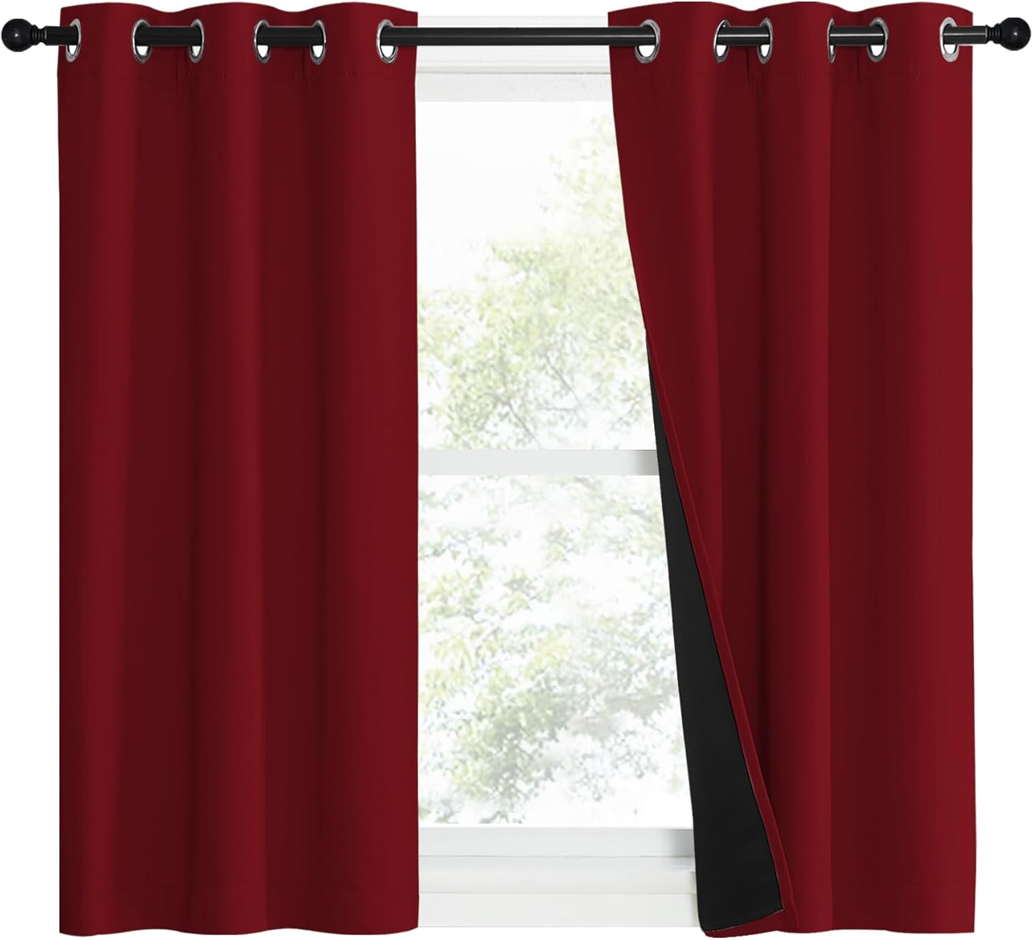 NICETOWN 100% Blackout Curtains with Black Liner Backing, Thermal Insulated Curtains for Living Room, Noise Reducing Drapes for Christmas, Burgundy Red, 37" x 50" Per Panel, Set of 2