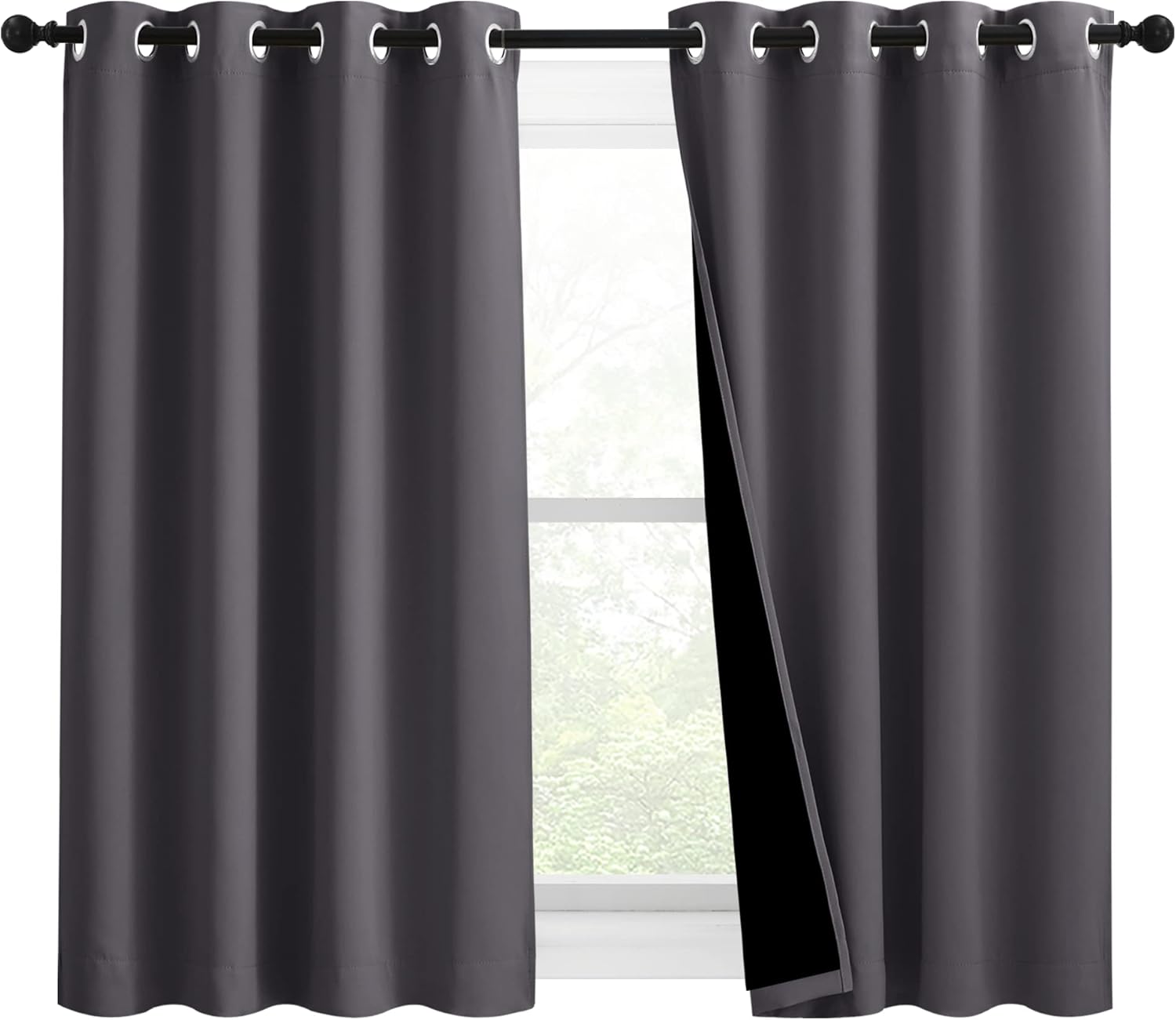 NICETOWN 100% Blackout Blinds, Set of 2, 46" x 45", Laundry Room Decor Window Treatment Curtains for Large Patio Sliding Door, Thermal Insulated Grey Curtains for Bedroom
