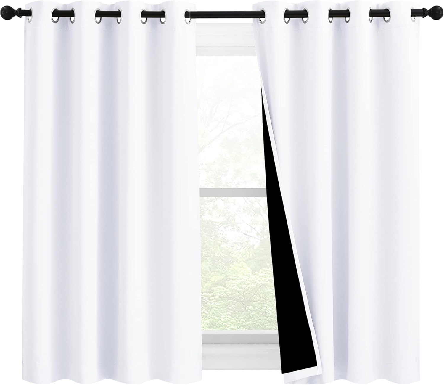NICETOWN White 100% Blackout Curtains for Windows, Pack of 2, 46" W x 45" L, Super Heavy-Duty Black Lined Total Darkness Drapes for Bedroom, Privacy Assured Window Treatment for Patio