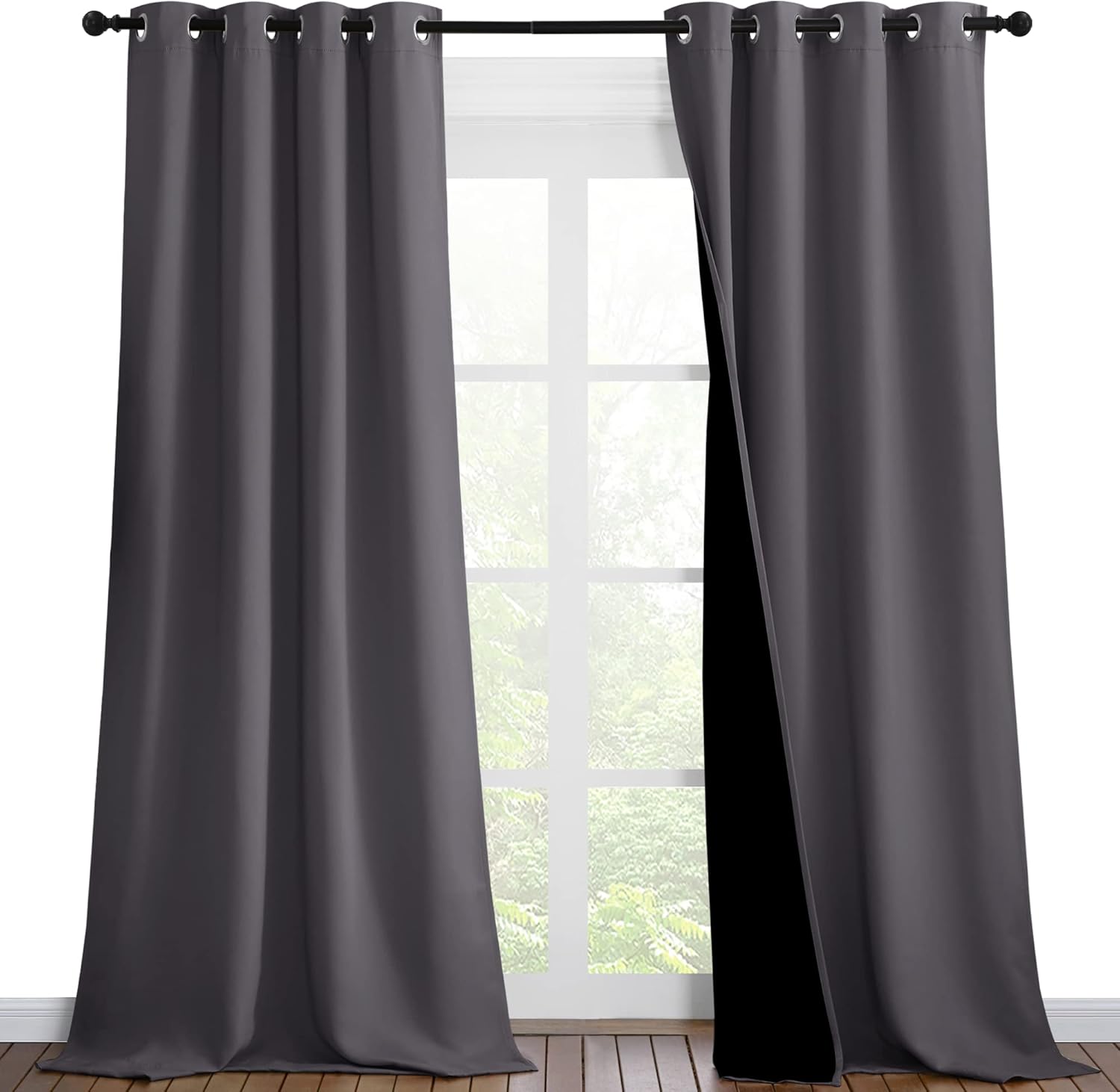 NICETOWN 100% Blackout Blinds, Set of 2, 46" x 96", Laundry Room Decor Window Treatment Curtains for Large Patio Sliding Door, Thermal Insulated Grey Curtains for Bedroom