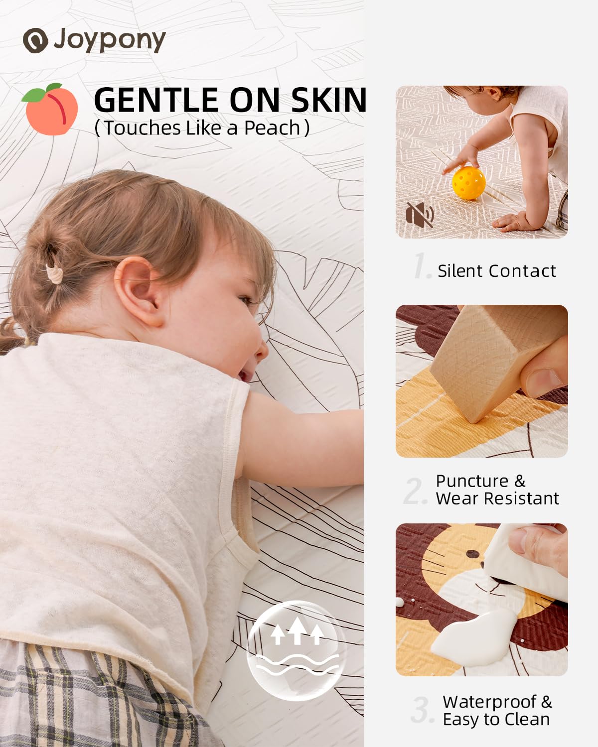 - 【Slip-Resistance & Safety】The Joypony baby play mat, designed for babies aged 0-36 months, features a unique double L loop pattern that provides excellent slip-resistance. This ensures maximum safety as your child learns to walk, significantly reducing the risk of slipping and creating a secure play environment