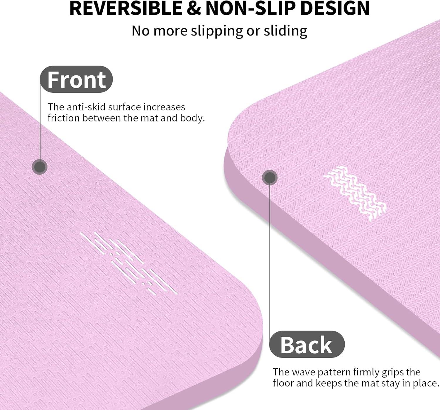 - 1/2" Thickness for Comfort & Protection: The thickness of this exercise mat is 1/2 inch which provides more stability and cushioning than thin mats. It is comfortable which can protect your knees and joints from injury during exercise.