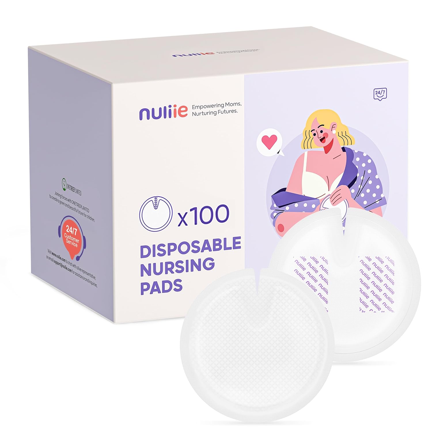 Nuliie Super Absorbent & Featherlight Disposable Nursing Pads 100 Count, Stay Dry, Soft & Breathable Breast Pads for Leaking Milk, Leakproof, Individually Packaged Breastfeeding Essentials for Moms