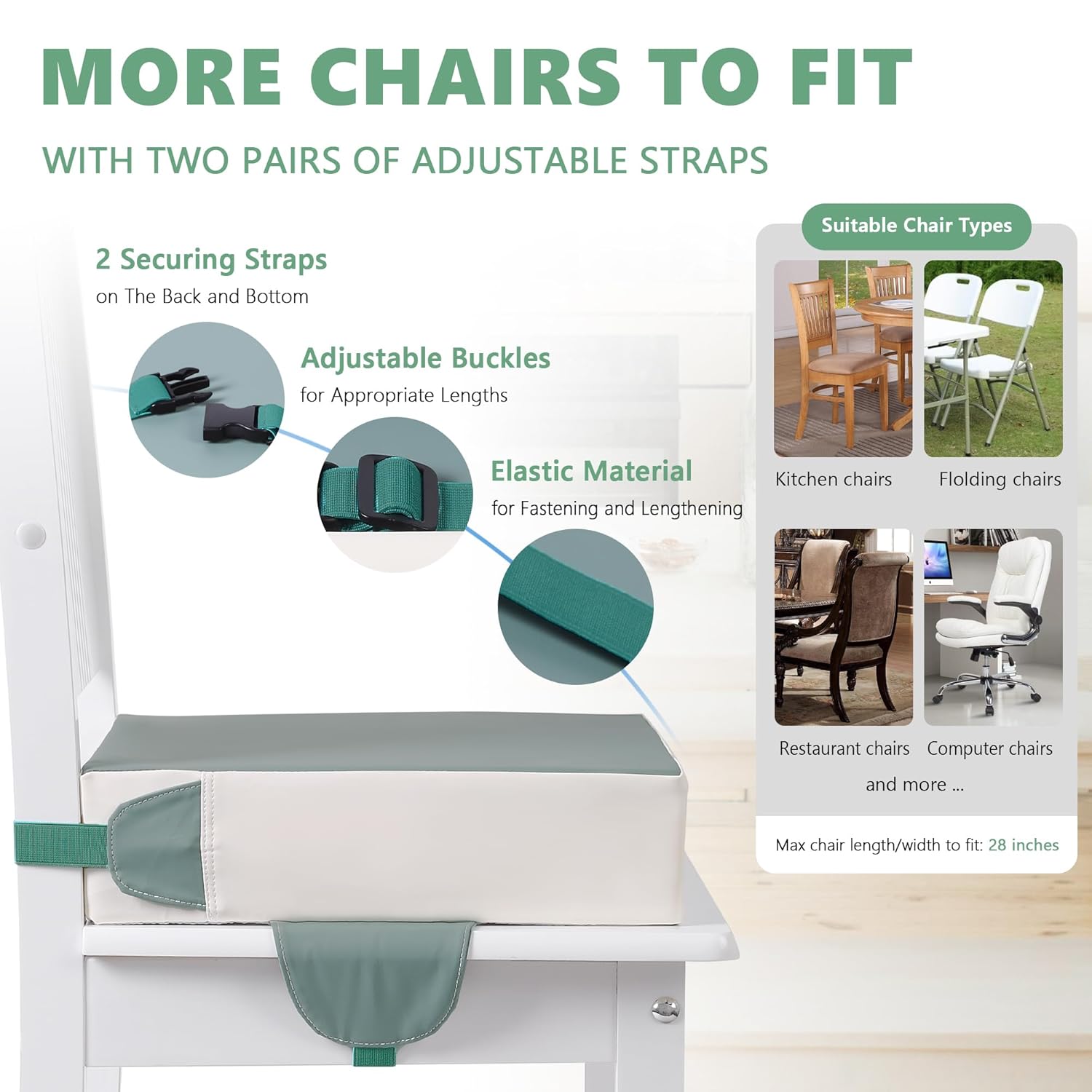 - 【Easy to Clean】The cover of this booster seat is made of waterproof fabric, which can prevent stains from penetrating to a certain extent. You can quickly wipe it with a damp cloth, or remove it for washing. This makes keeping the seat clean effortless and saves you valuable time and energy.