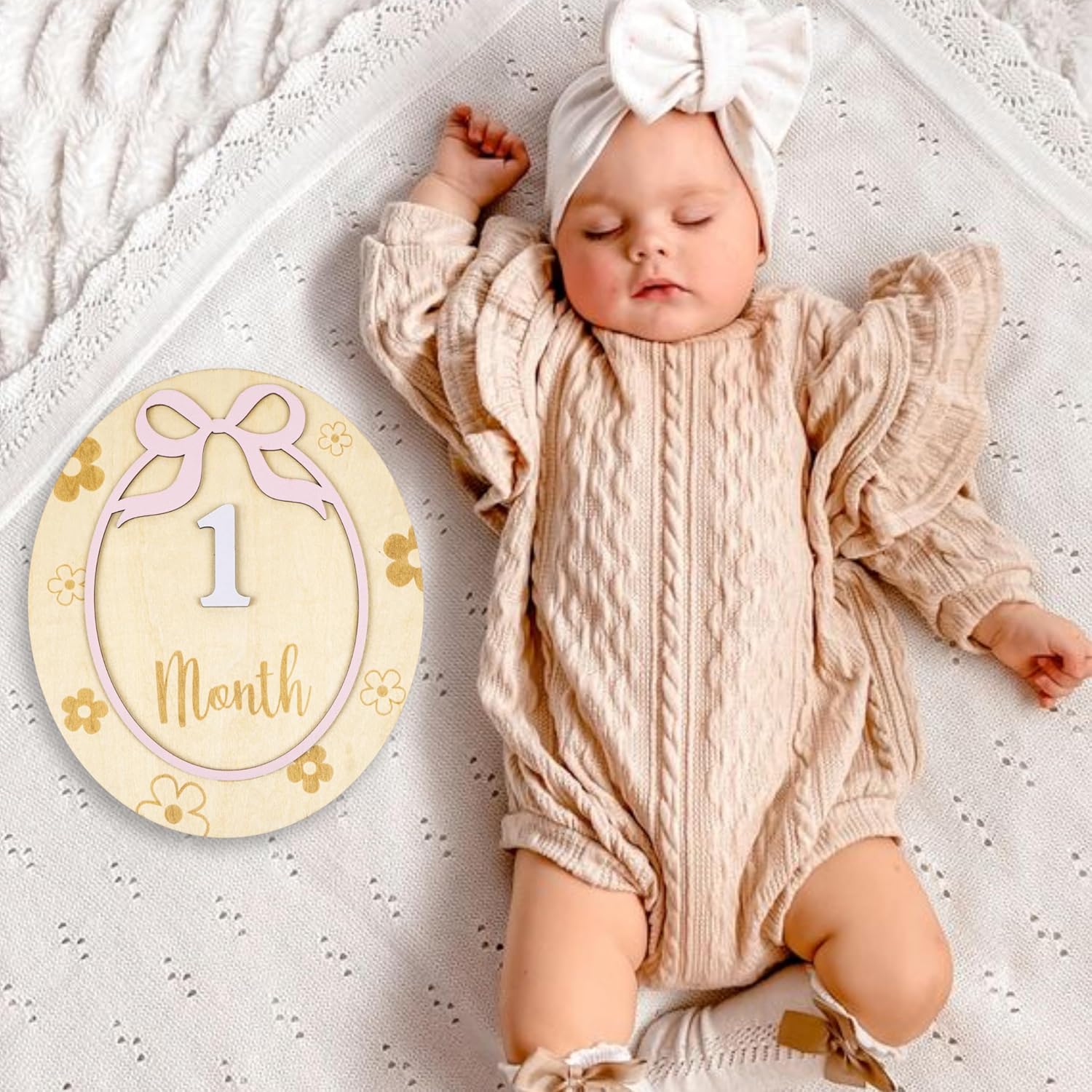 Baby Monthly Milestone Cards - Acrylic Monthly Milestone Discs - Newborn Photography Props to Document Your Baby´s Growth - Baby Announcement Sign (B09)