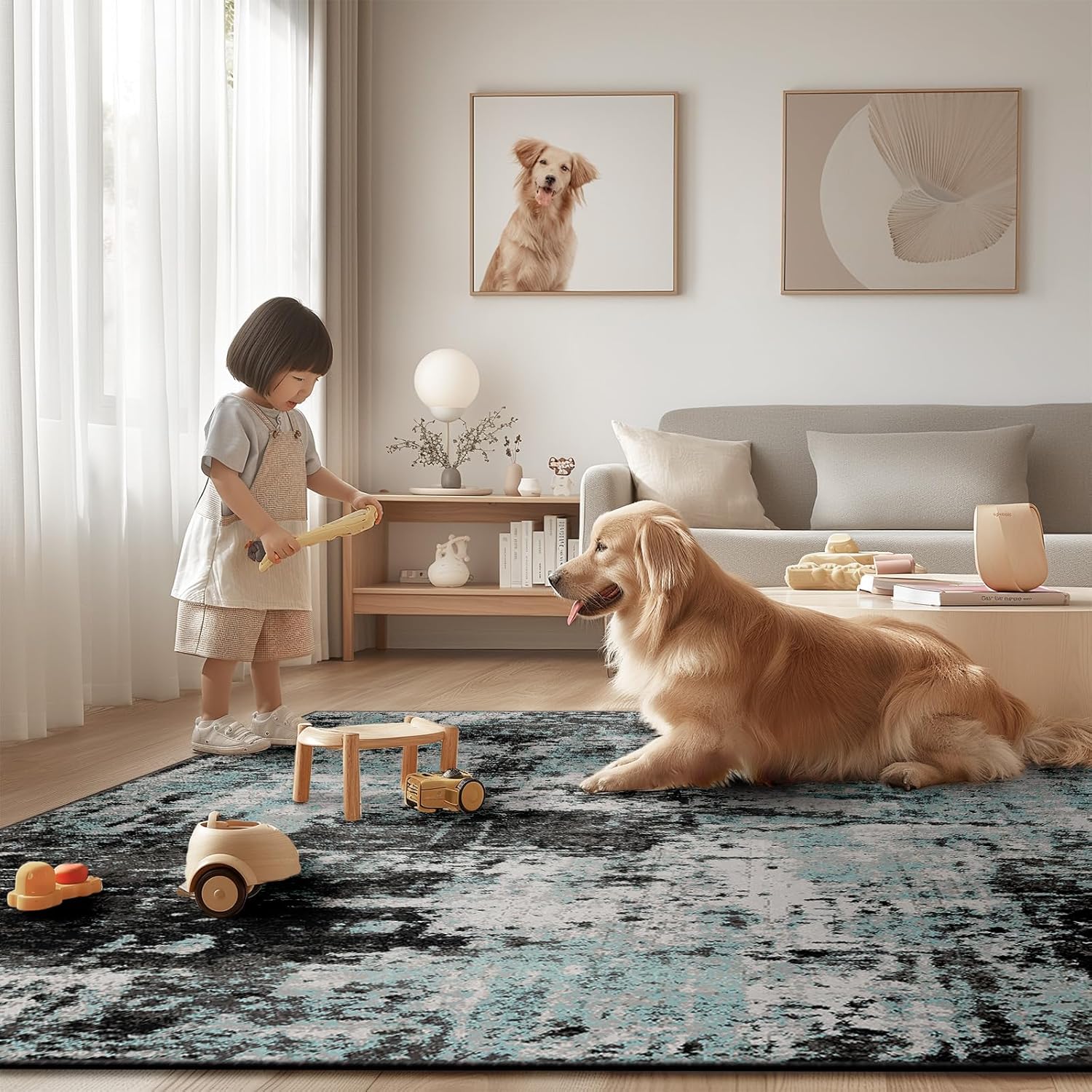 - Soft Modern Area Rug: this area rug with a unique silk-like luster and a dense texture is made of low-pile soft material which feels great underfoot. With its low pile, the fibers are short and tightly packed together, creating a smooth and even surface. that's comfortable to step on barefoot.