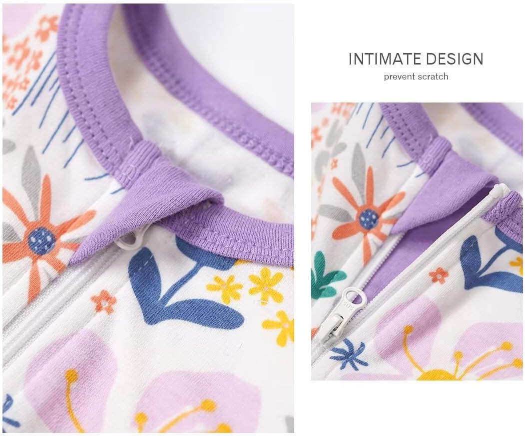 Teach Leanbh Toddler Baby Boys Girls Footless Pajamas Cotton 2 Way Zipper Printing Short Sleeve Romper Sleep and Play