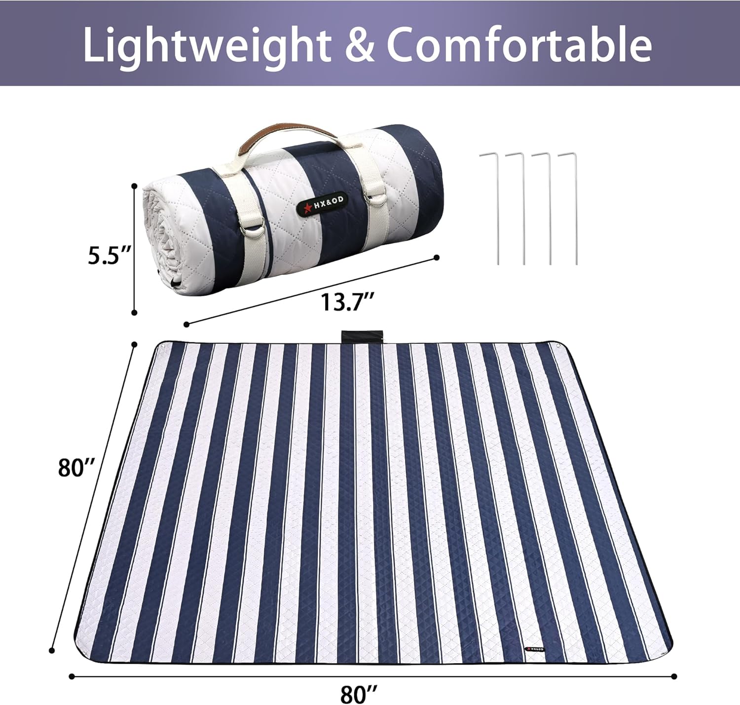 - ☀ 【Large size, Portable & Lightweight】- Our Picnic blankets unfoldedsize is 80''x 60''. It’s large enough to fit for 4-6 adults for siting, giving your children and pets a large area to play. This is a windproof picnic mat. Comes with ground spikes to keep the picnic mat from blowing up. Can be used in all seasons.