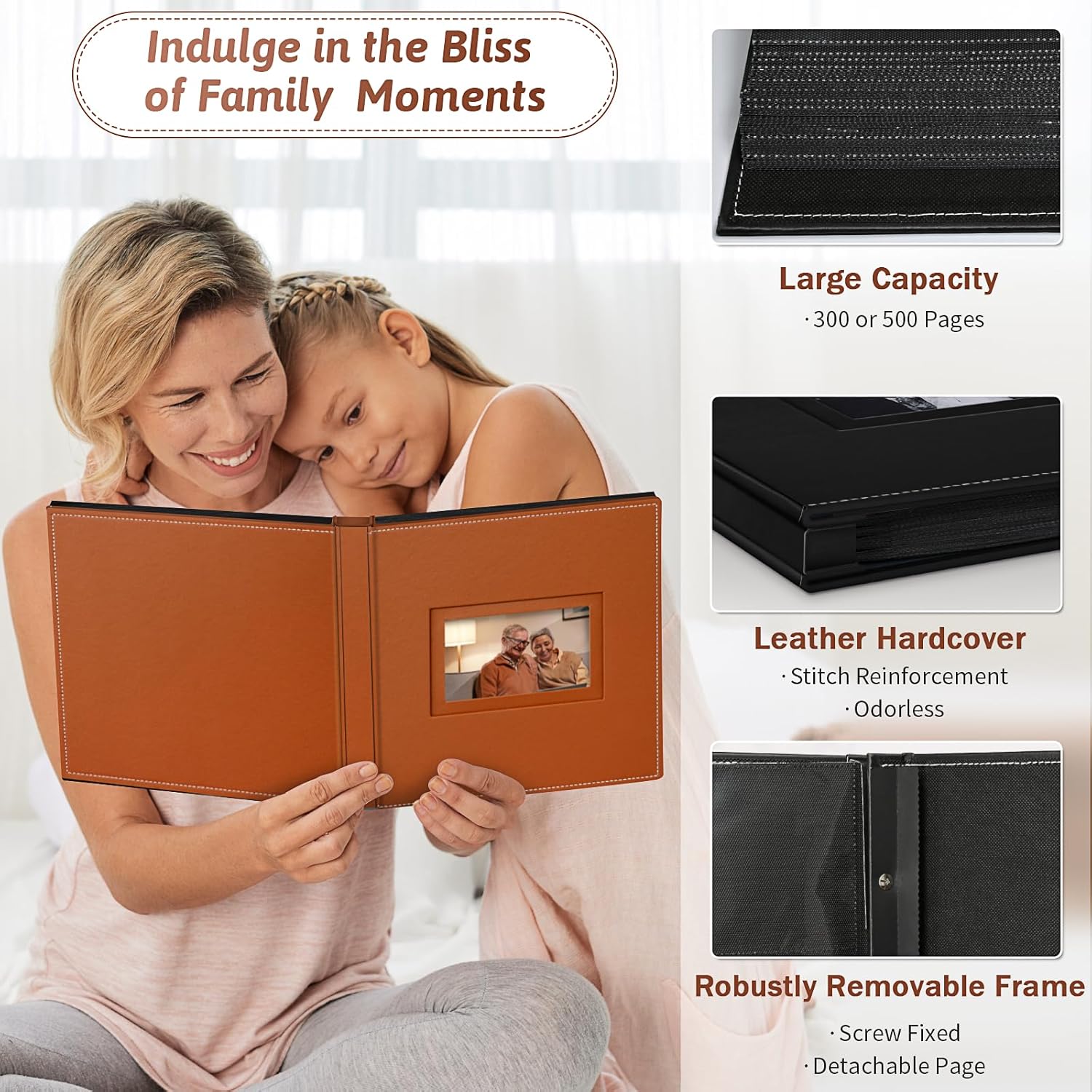 Popotop Photo Album 4x6 500 Pockets with Leather Hardcover Cover, Large Photo Album Binder Book with 50Pcs Pages for Family Travel Wedding Baby Gifts