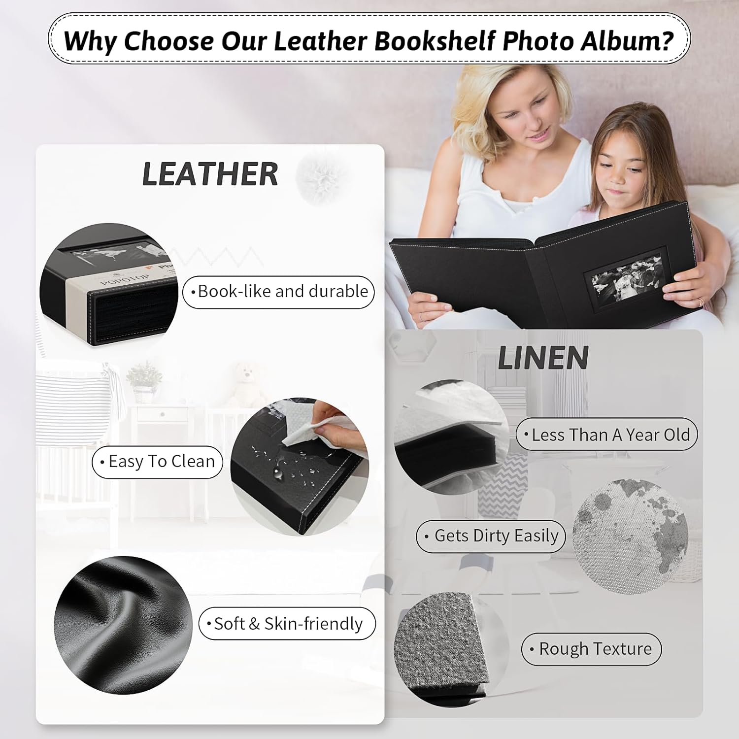 - 🥰High Quality: This 4x6 photo album holder book cover is made of high quality vegan leather, delicate and smooth, no shedding. The inner pages are made of acid-free material, which is HD transparent and does not yellow with time.