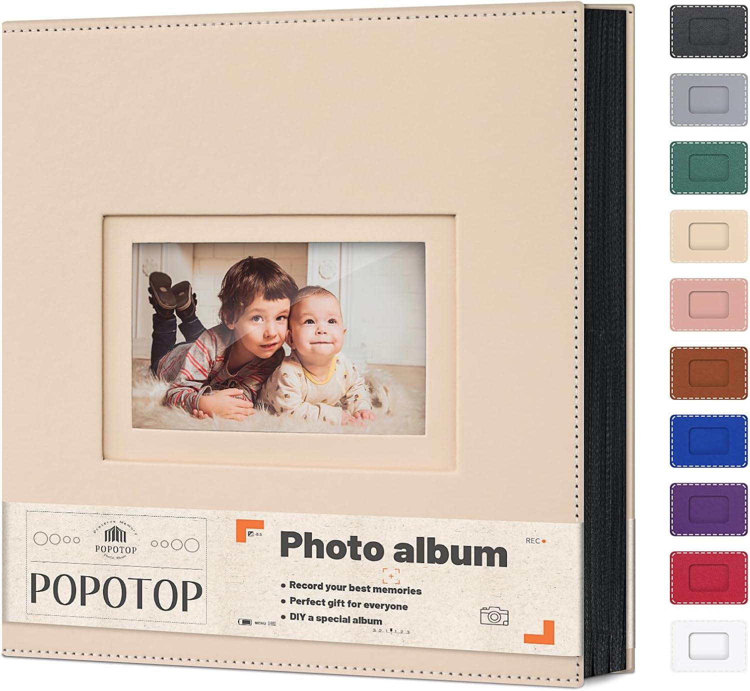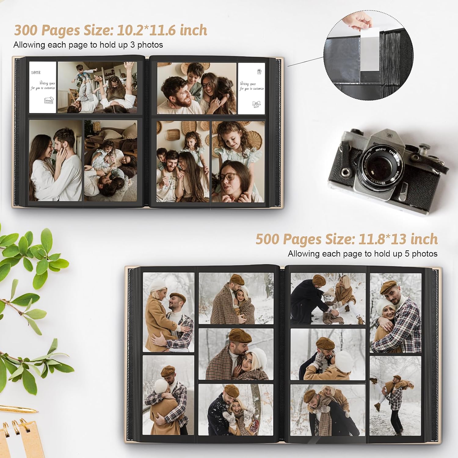 Popotop Photo Album 4x6 500 Pockets with Leather Hardcover Cover, Large Photo Album Binder Book with 50Pcs Pages for Family Travel Wedding Baby Gifts