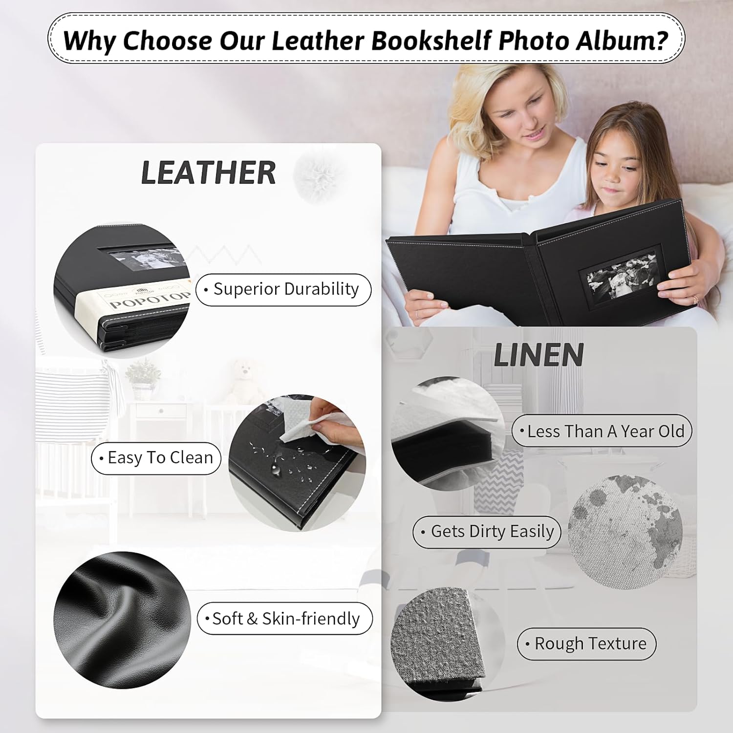 Popotop Photo Album 4x6 500 Pockets with Leather Hardcover Cover, Large Photo Album Binder Book with 50Pcs Pages for Family Travel Wedding Baby Gifts