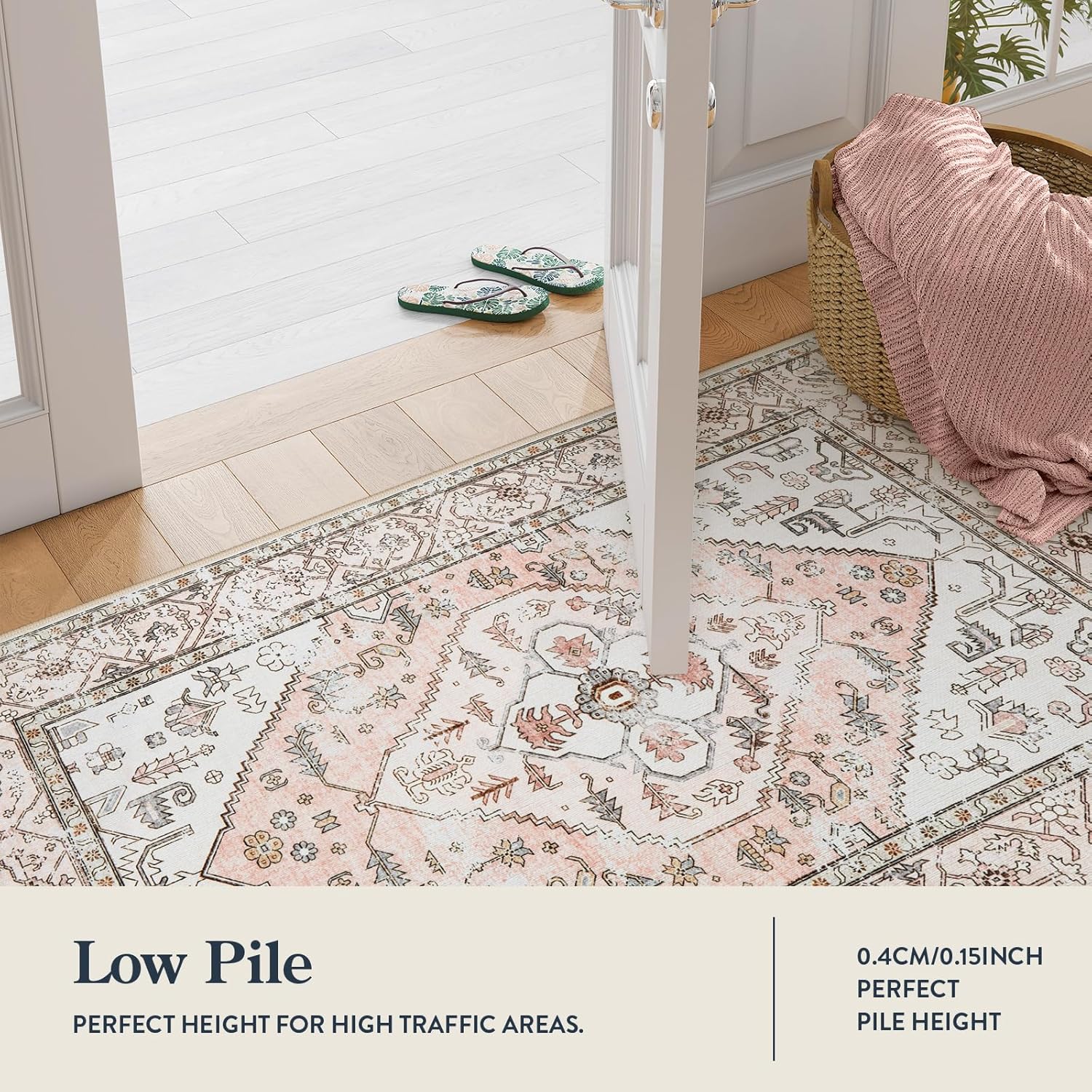 Lahome Boho Entryway Rugs Indoor - 2x3 Washable Area Rug Throw Small Rugs for Bedroom Girls Non-Slip Lightweight Bathroom, Vintage Print Floor Doormat Carpet for Kitchen Laundry Room (Pink, 2'x3')