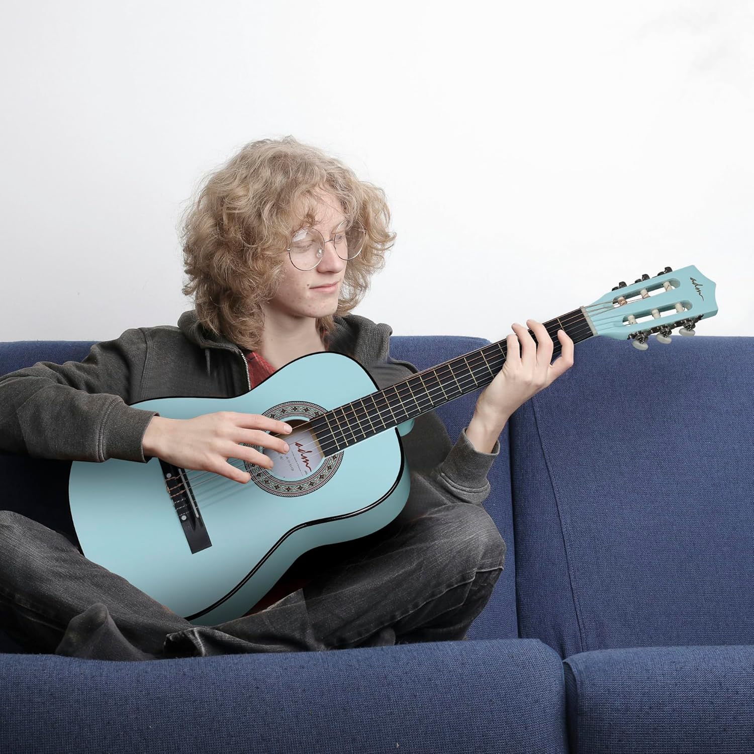 ADM Beginner Acoustic Classical Guitar 36 Inch Nylon Strings Wooden Guitar Bundle Kit for Kid Boy Girl Student Youth Guitarra Online Lessons with Gig Bag, Strap, Tuner, Strings, Picks, Socal Green