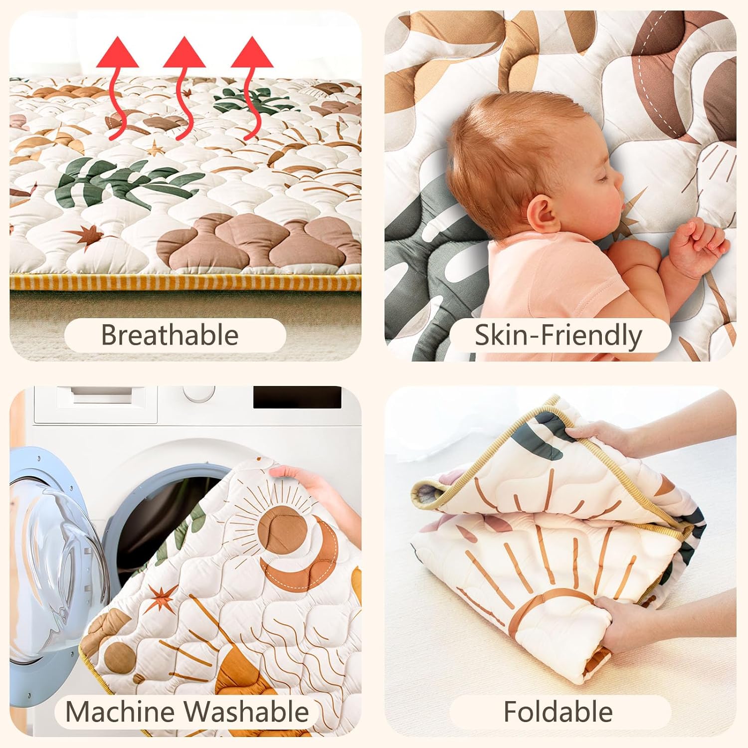Baby Play Mat, 50x50 Playpen Mat with Super Soft Touch, Activity Mat with Upgraded Anti-Slip Bottom, Machine Washable Crawling Mat for Floor & Picnic(Boho Nature)