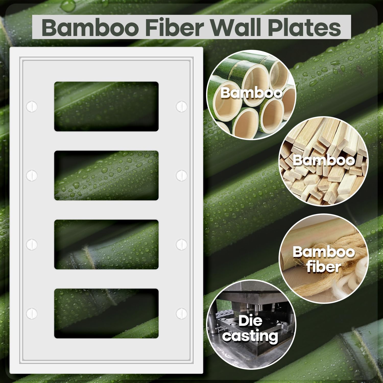 Light Switch Cover Plate White Classic Decorative Switch Plates Cover Bamboo Fiber Wall Plate Cover for Decorator, Duplex, Toggle, Combo(4-Gang Quad Decorator,1 Pack), NF010