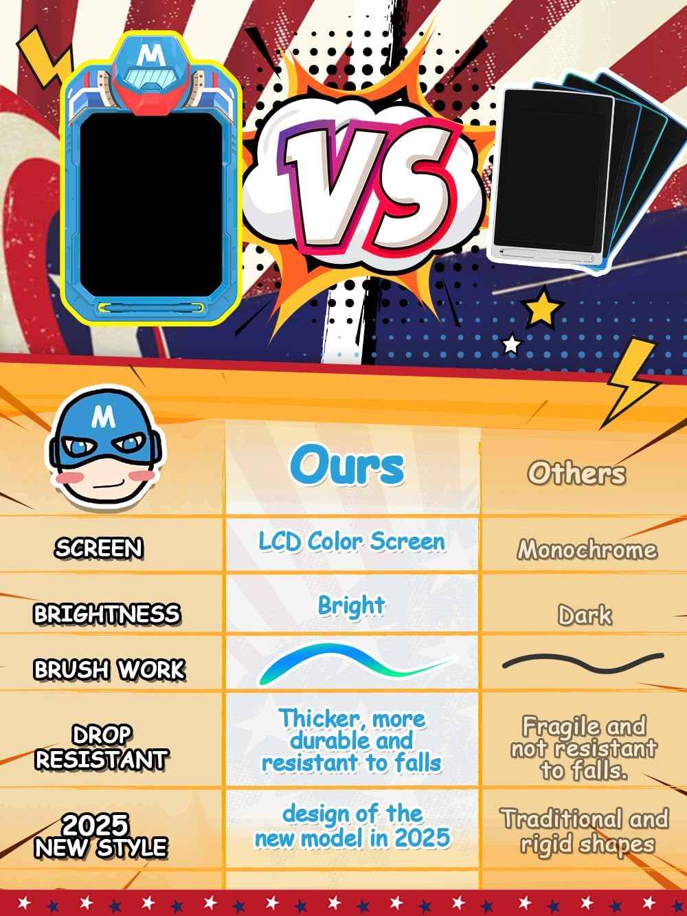 - 【With a cool and stylish design】 featuring our iconic heroes like Spider-Man, Captain M, Mecha Heroes in action, and the mighty Hulk, this toy is an ideal learning companion for boys and girls aged 3, 4, 5, and 6. It serves not only as a graffiti board brimming with creative inspiration but also as a painting board full of endless fun.