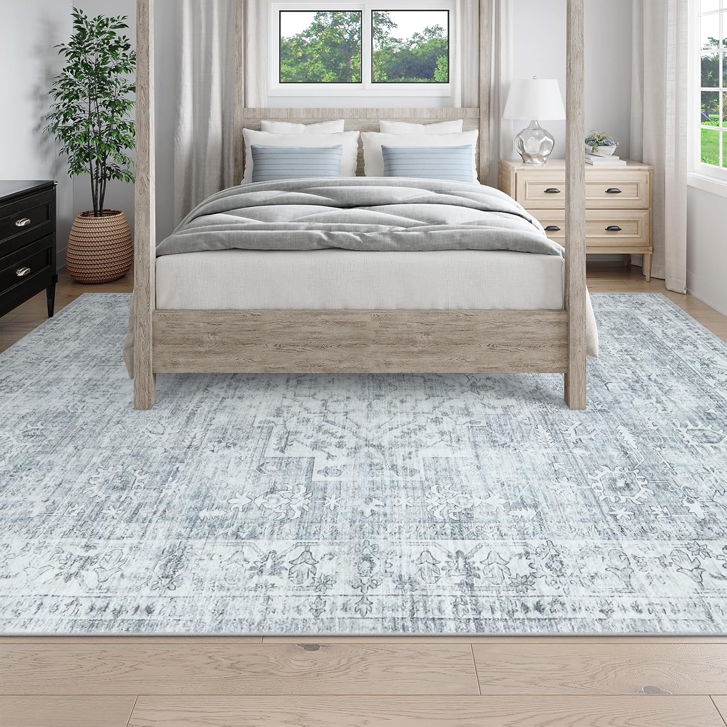 LIVEBOX Washable Area Rug 9x12 Rugs for Living Room Bedroom, Non-Slip Boho Neutral Carpet for Dining Room Office, Low-Pile Farmhouse Soft Carpets for Kids Nursery Room Playroom, Grey