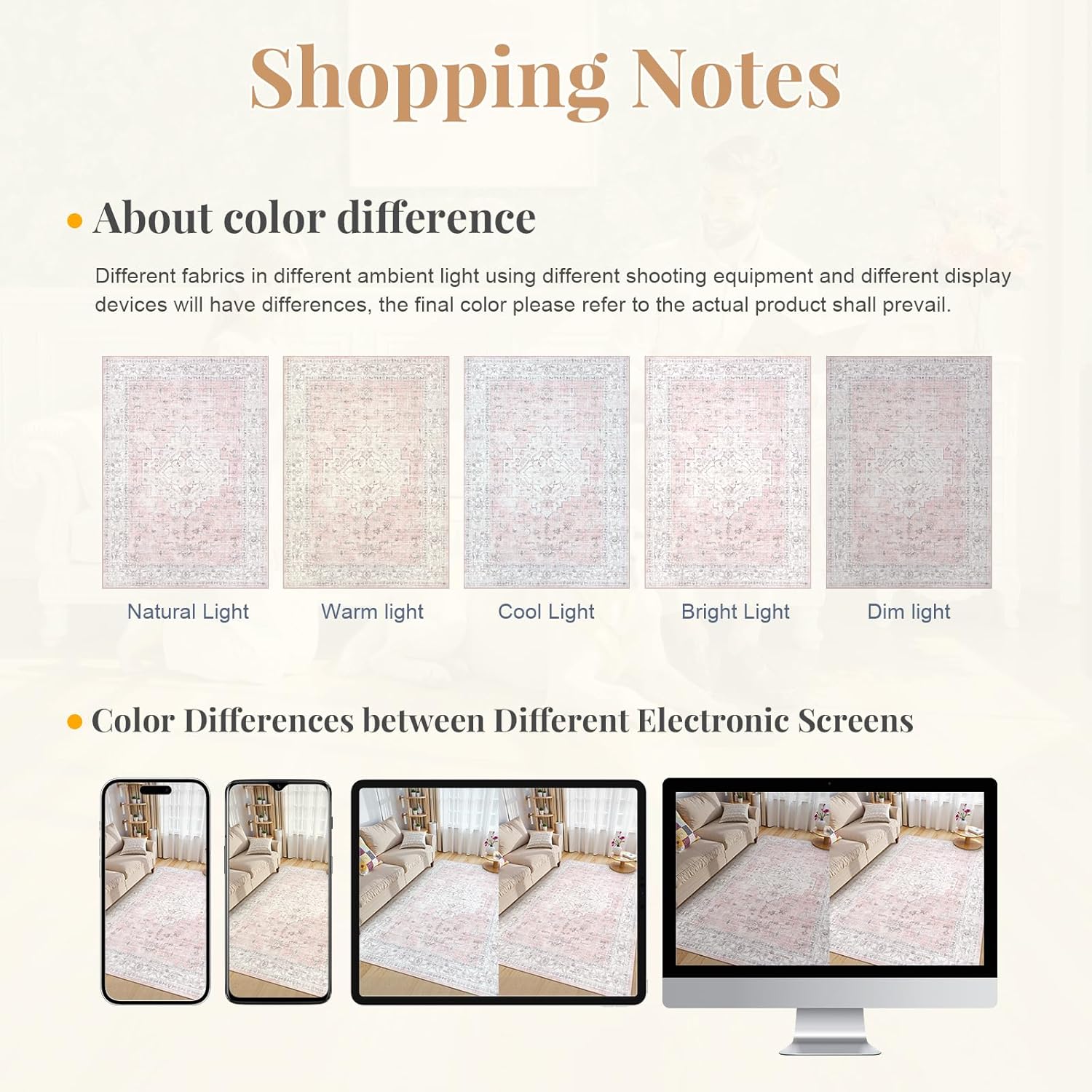 LIVEBOX Pink 6x9 Area Rug for Bedroom Girls, Boho Washable Rugs for Living Room Nursery, Non-Slip Indoor Soft Carpet Low-Pile Farmhouse Carpets for Dining Room Kids Playroom, Pink