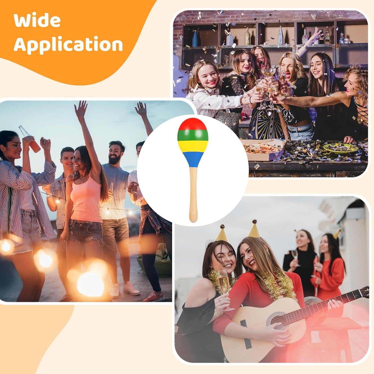 - 【Generous Sharing Pack】Enjoy the symphony of laughter and rhythm with a collection of 24 colorful 7.9" wooden maracas, perfect for friends and family to share. They are ideal for family gatherings, music classes, and festive celebrations.