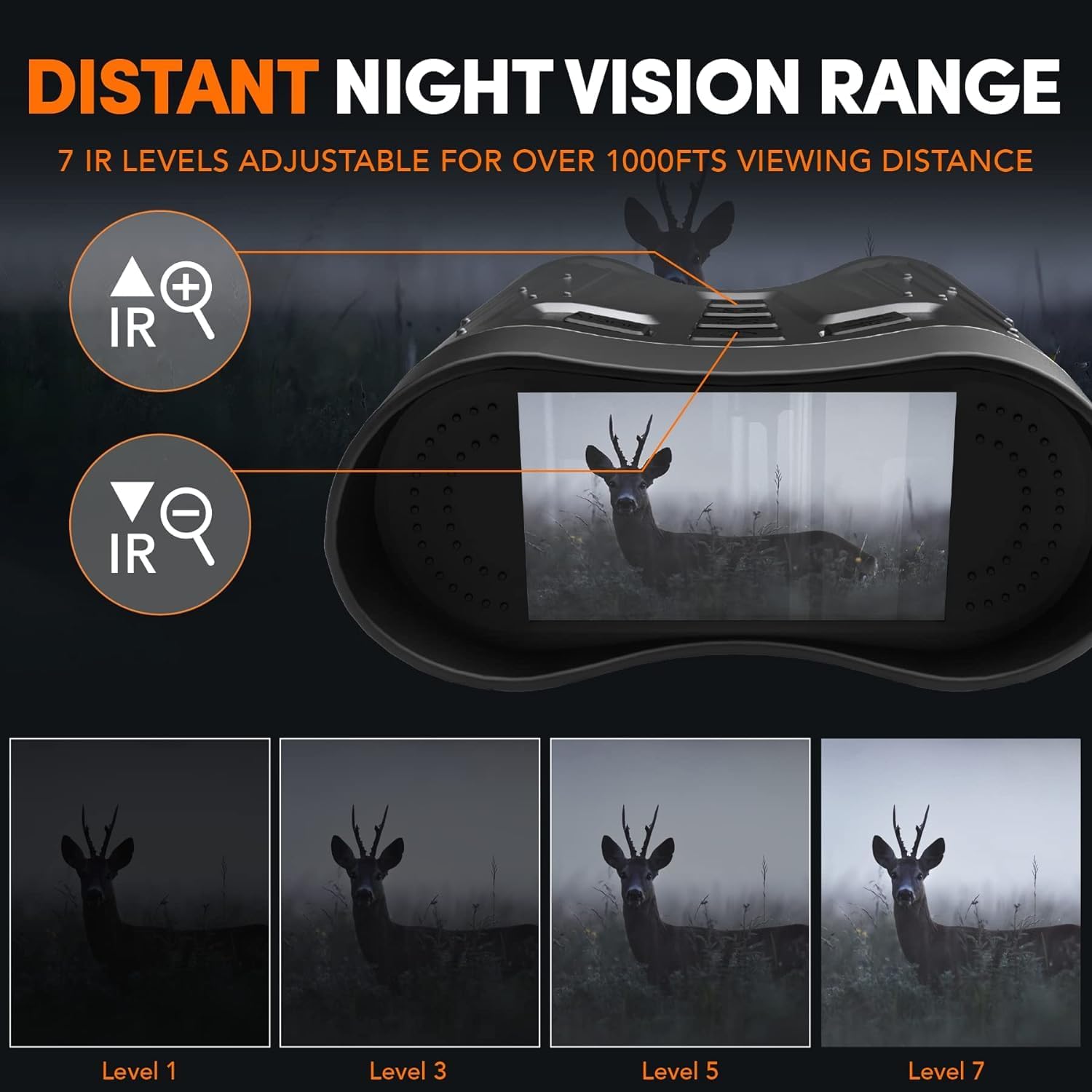 GTHUNDER Night Vision Goggles, Night Vision Binoculars – 4K UHD Video, 52MP Photos, App Remote Control, 10X Zoom, 4" HD Screen, 984ft, 7-Level IR, 4000mAh, 32GB Card – Ideal for Hunting & Security