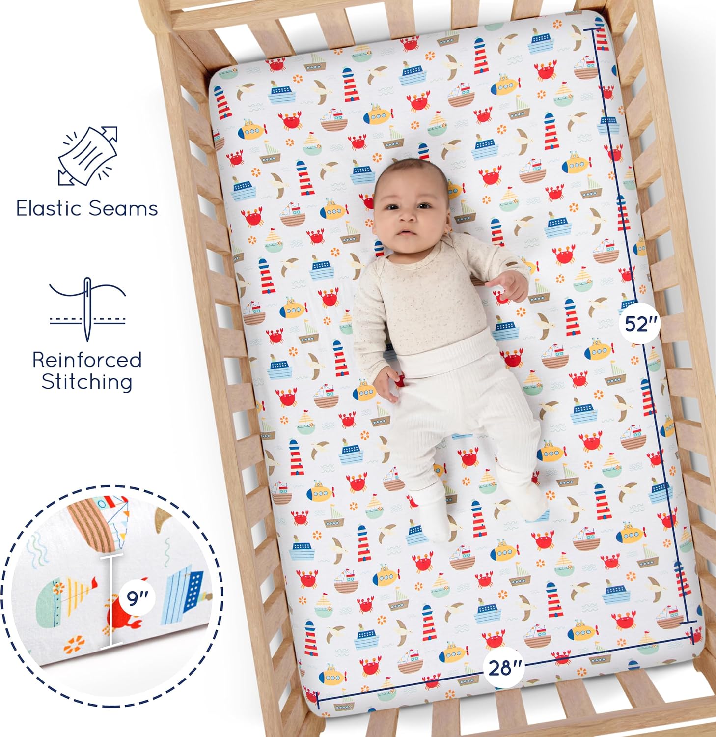 - 💪 SOFT & DURABLE - Made from soft jersey fabric with reinforced stitching, these fitted crib sheets are built to last. Soft, breathable and safe baby boy bedding sets for cribs.