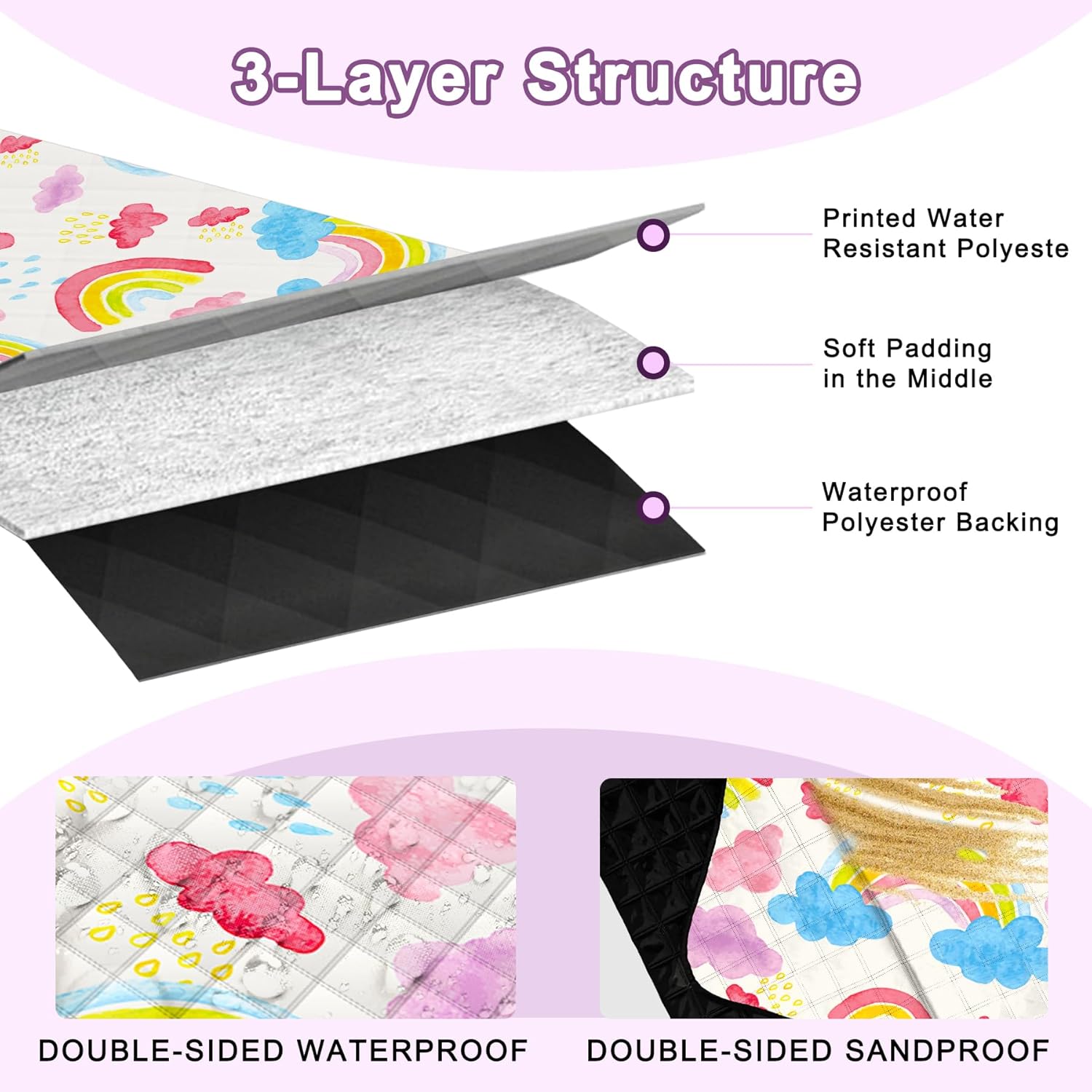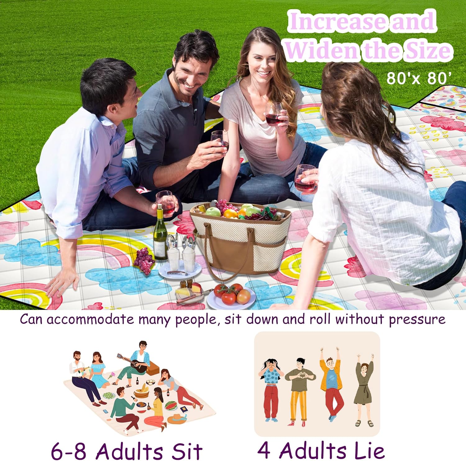 Extra Large Picnic Blanket Waterproof,80"x 80"Foldable Machine Washable Beach Blanket,Outdoor Blanket for 6-8 Adults,Picnic Mat Suitable for Indoor Crawling,Park Beach,Camping,Hiking,Travel (Rainbow)