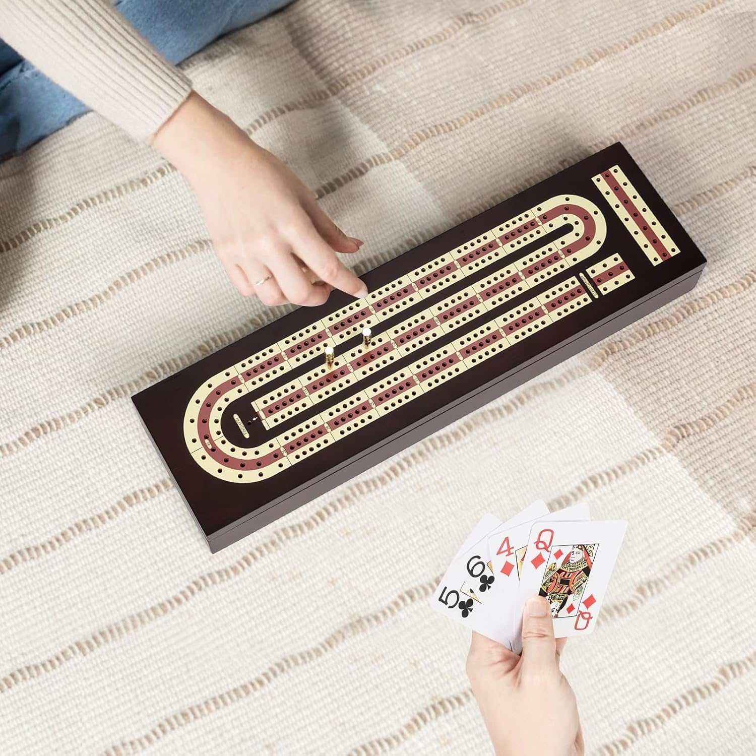 - Continuous 3-Track Board: Designed with a traditional continuous track layout, this board boasts three parallel tracks, each meticulously marked with precise scoring holes, fostering a dynamic and interactive gaming environment that challenges players and enhances the competitive spirit.