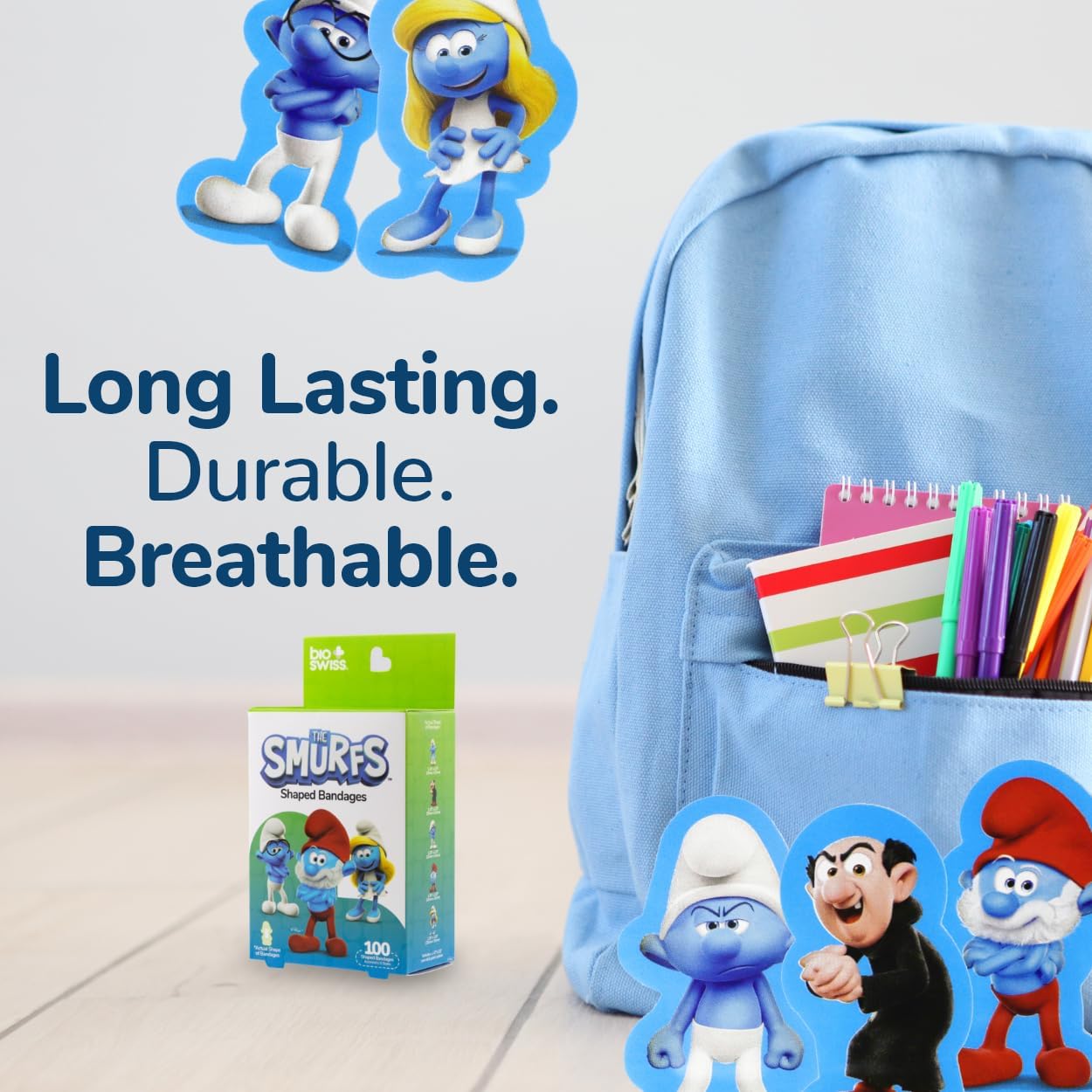 - EASY TO CARRY AND USE: These cute and colorful Smurfs children's bandages are easy to take with you for travel, and easy to store in a home first aid kit; these healing bandages are perfect for school, summer camp, camping trips, weekend getaways and more