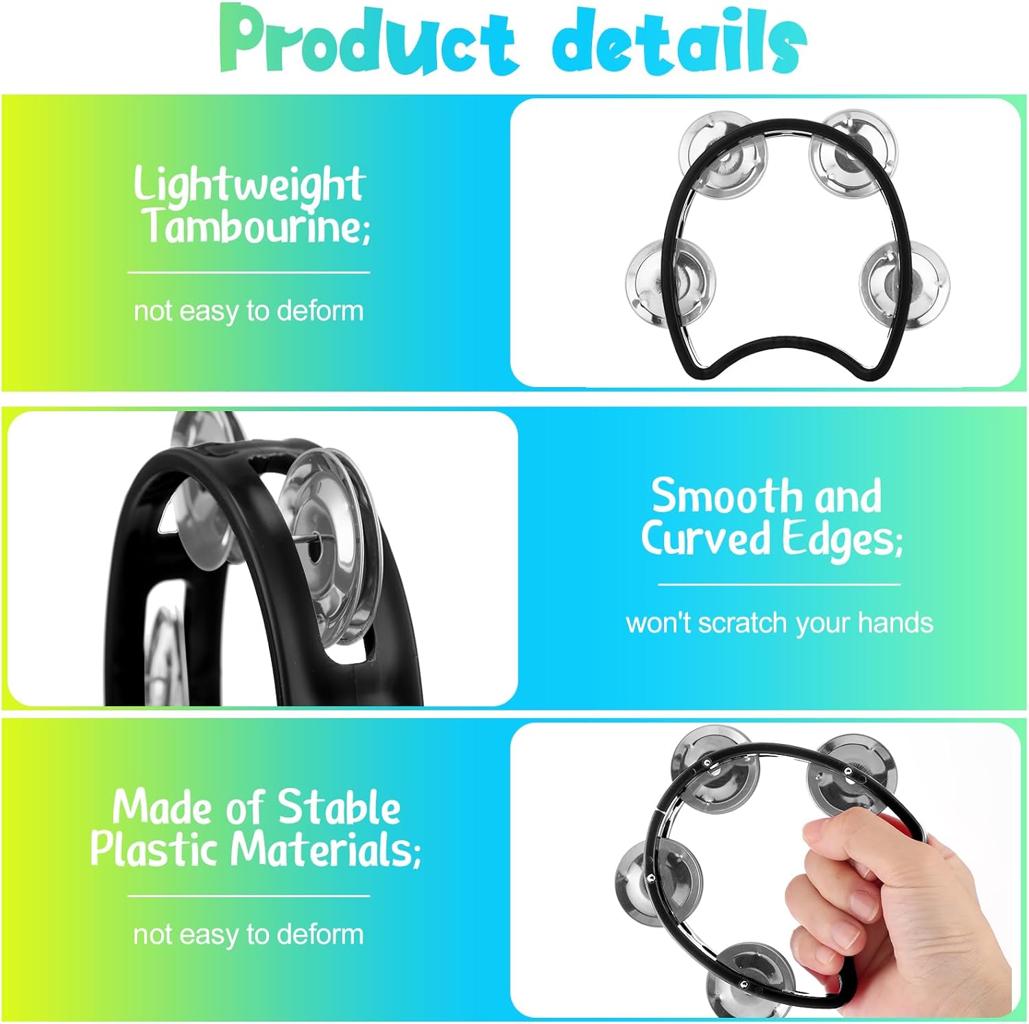 - Applicable for Many Occasions: the tambourines for kids are suitable for many occasions, such as instrumental stage performance, christian dance, concert, dance party, prom, preschool education early learning, First day of school, wedding, thanksgiving day, Christmas, birthday party, fiesta and so on, adding a joyful atmosphere