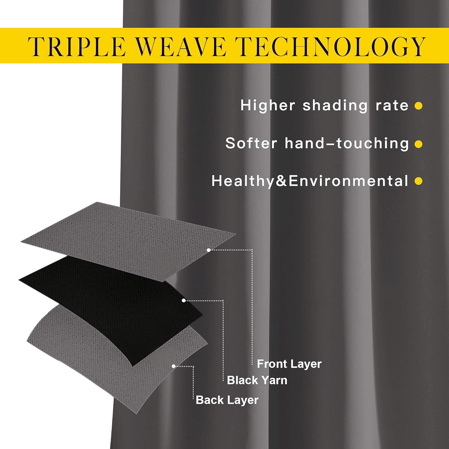 - Amazing Material: Super heavy and soft Blackout Curtain Panels are very upmarket. Besides, 85%-99% light blocking, thermal insulated, soundproof, and energy-efficient. Thread trimmed and wrinkle-free, both sides are the same color.