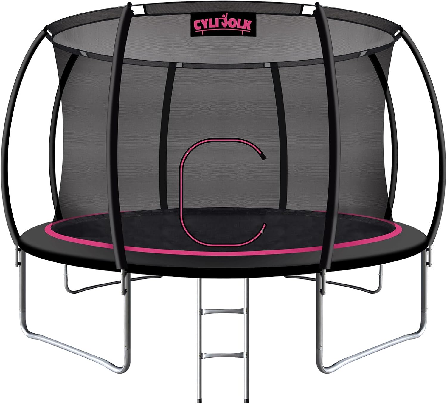 - C-Shaped Door Design and Comes with Ladder, Shoe Bags & Trampoline Socks: The outdoor trampoline for kids with unique C-shaped door and ladder ensures more easy and ample space for access. Safety buckle prioritizes security during playtime.