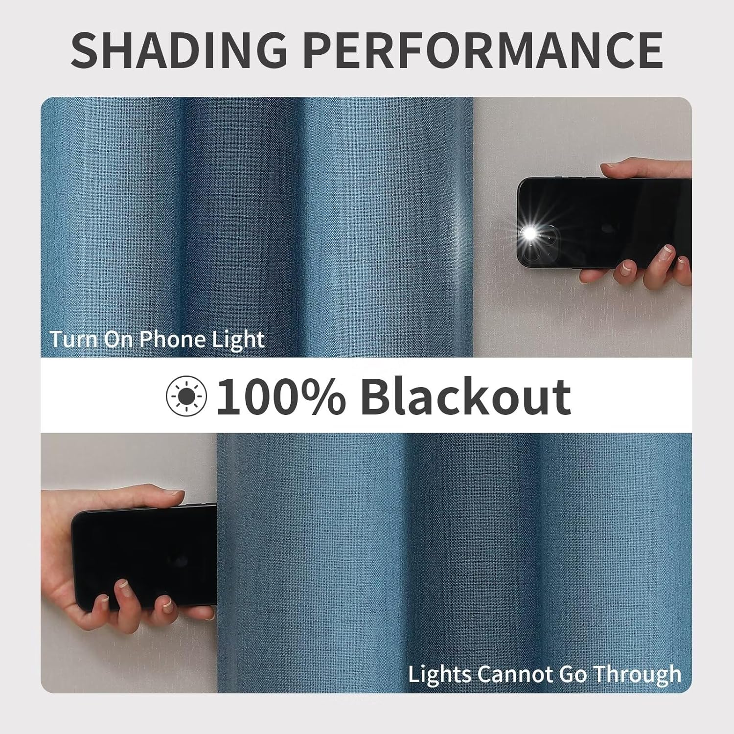 - 【Faux Linen Material】 Bedroom curtains are made of faux linen texture with a very tight workmanship. Blackout shades are not only thick, but also comfortable and drapey. Our curtains provide good noise reduction and protect home privacy well.