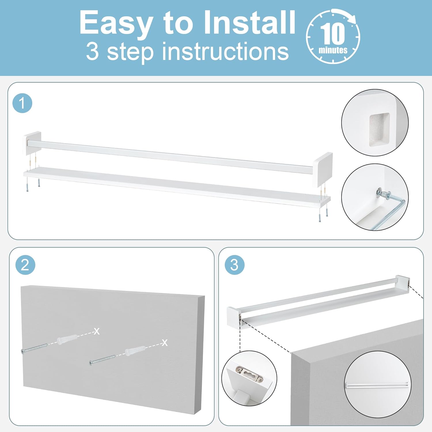 - Durable & High-Quality: Made of solid pine wood, these floating shelves are built to last. They'll provide a stylish and practical storage solution for years to come, making them an excellent addition to nursery decor and any room throughout your home