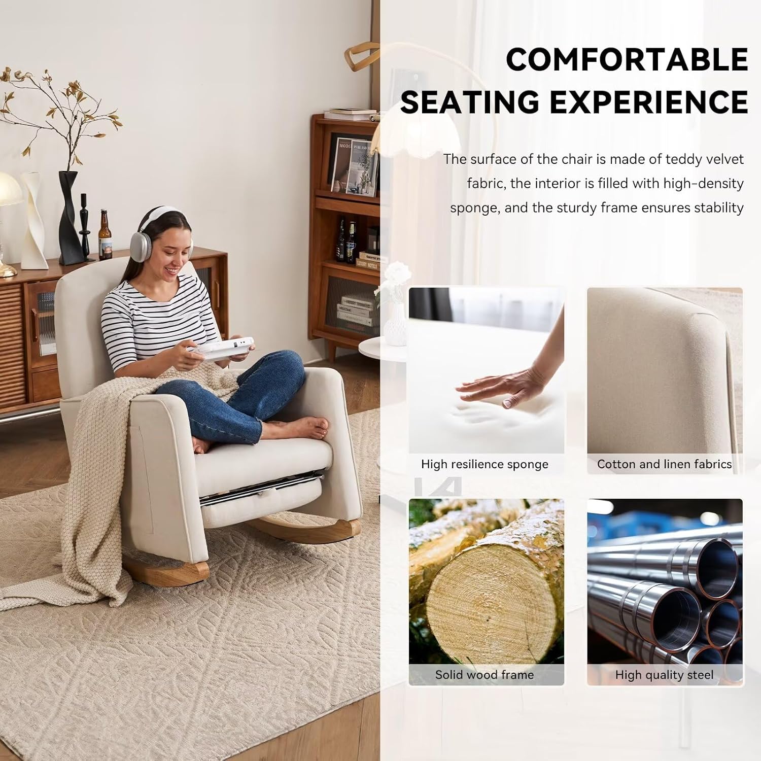 FOXHUNTER Rocking Chair Nursery with Adjustable Footrest and High Backrest, Upholstered Glider Chairs with Side Pockets for Nursery, Rocker Armchair Indoor for Living Room,Beige