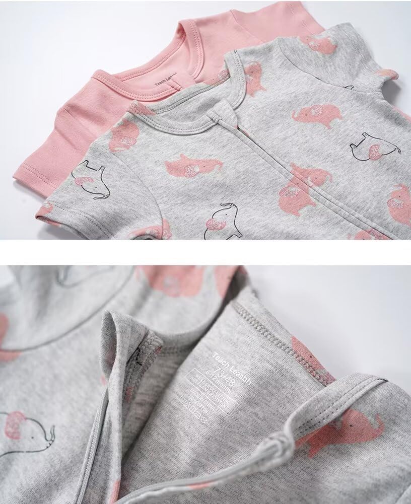 Teach Leanbh Unisex Baby 2 Pack Pajamas Cotton Short Sleeve 2 Way Zipper Printing Soild Romper Jumpsuit Sleep and Play