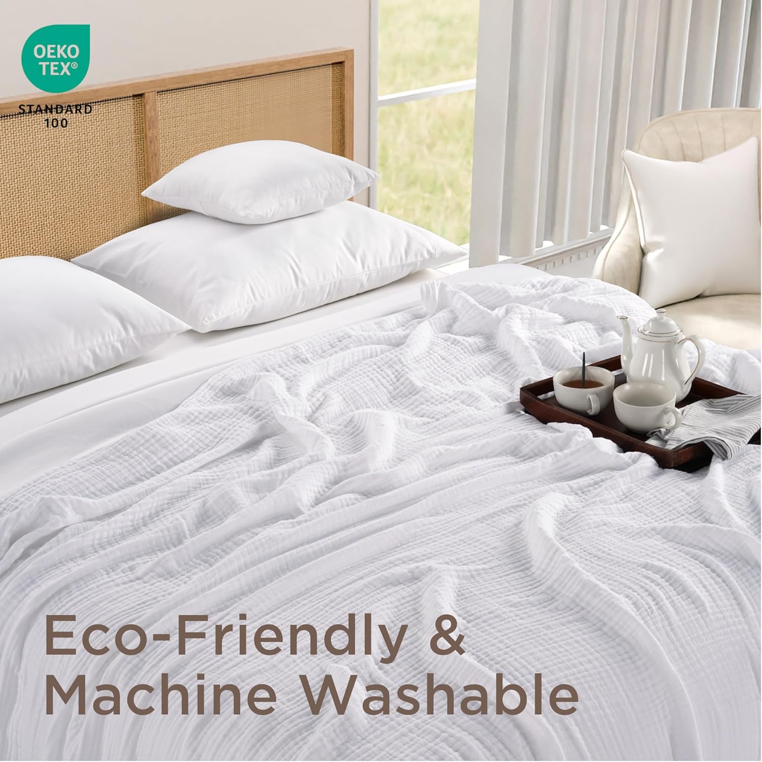 Threadmill Summer Queen Size Blanket| 4 Layer Cotton Gauze | Lightweight, Breathable, and Cozy for All Seasons | Versatile Muslin Blanket for Couch, Bed | White