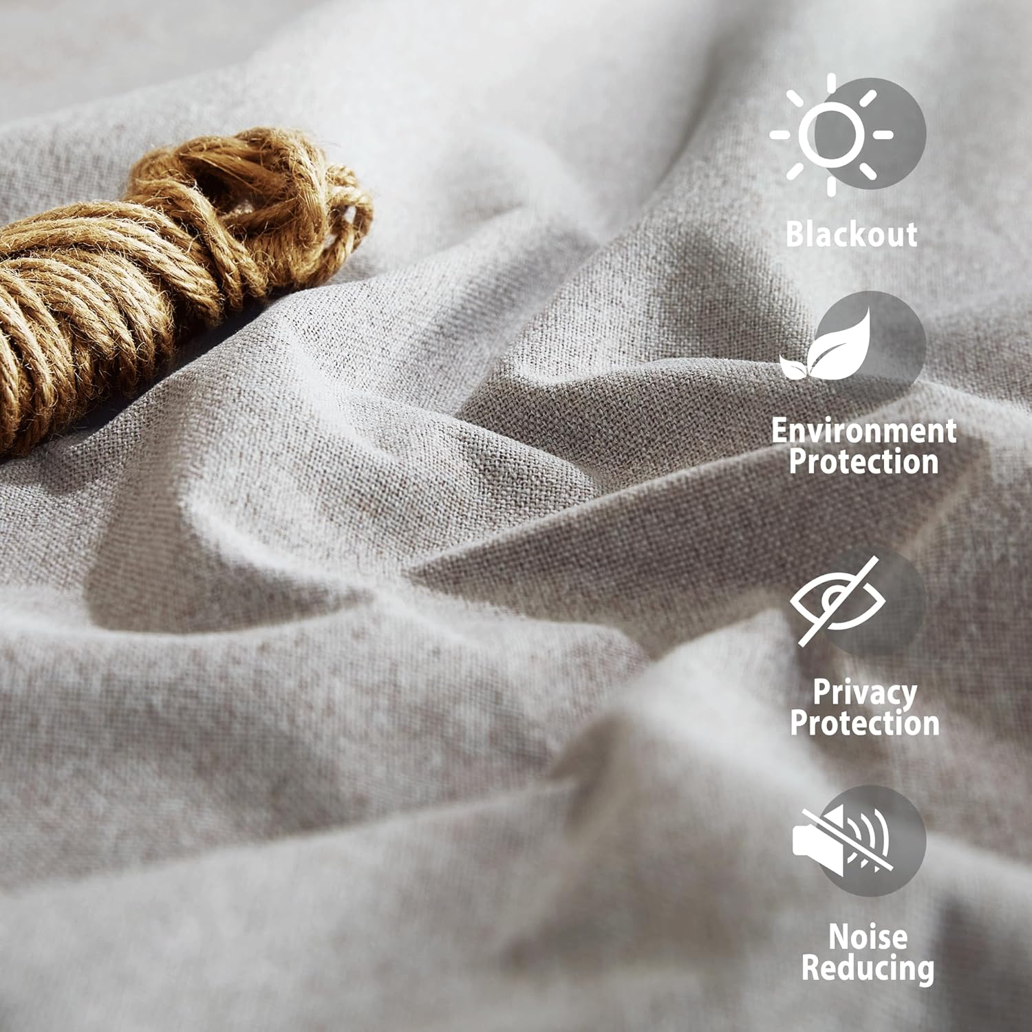 - Faux Linen: Faux linen blackout curtains bring both casual warmth and refined style to the room. The weave of the natural yarn-dyed fibers creates dimensional highs and lows for added depth. This curtain is an elegant option for any room in the home. Lab test shows these awesome curtain panels are environmental and vinyl free.