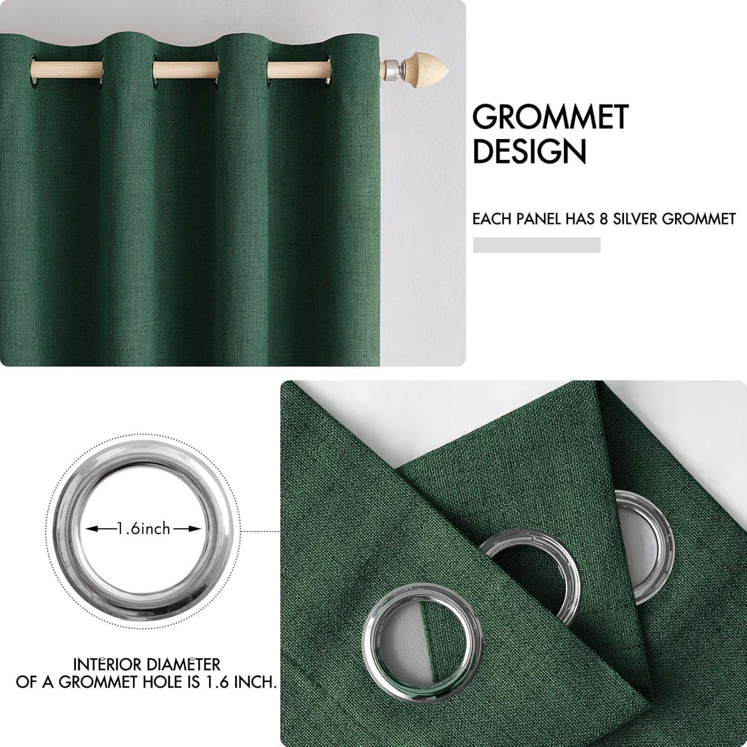 MIULEE 100% Blackout Linen Curtains for Bedroom Thermal Insulated Emerald Green Grommet Room Darkening Curtains & Drapes Christmas Decor for Living Room Nursery 52 x 96 Inch (2 Panels)