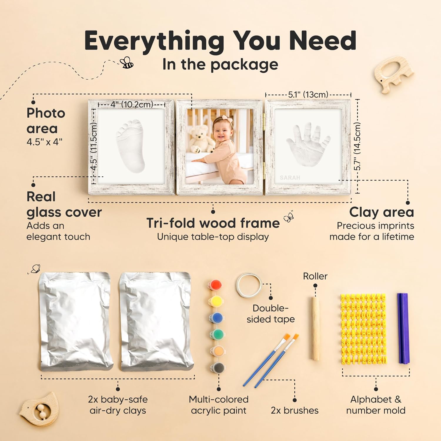- 100% Safe Food-Grade Clay - Our baby picture frame features 100% baby-safe air-dry clay, perfect for preserving your baby prints. Our premium material ensures durability, the baby handprint and footprint maker will look flawless for years to come.