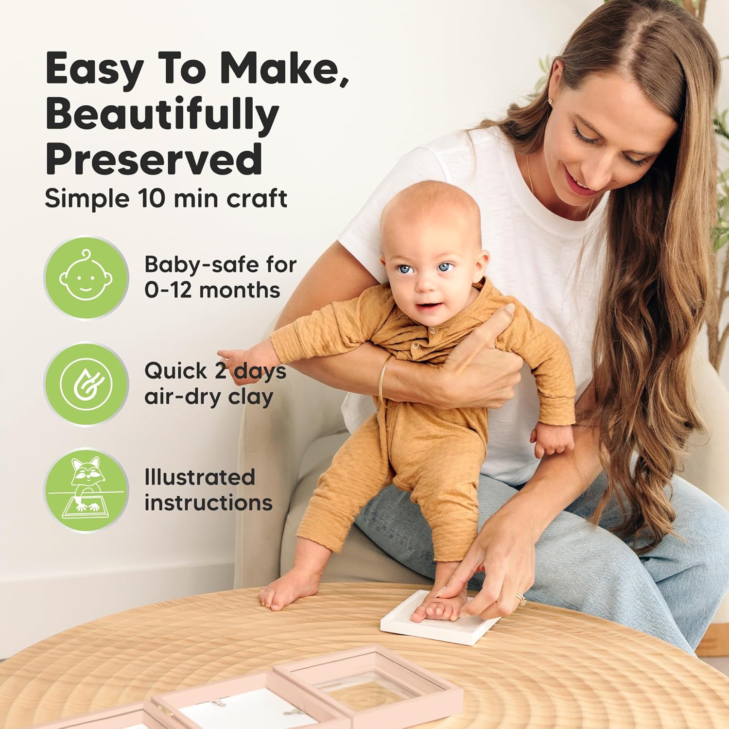 - 100% Safe Food-Grade Clay - Our baby picture frame features 100% baby-safe air-dry clay, perfect for preserving your baby prints. Our premium material ensures durability, the baby handprint and footprint maker will look flawless for years to come.