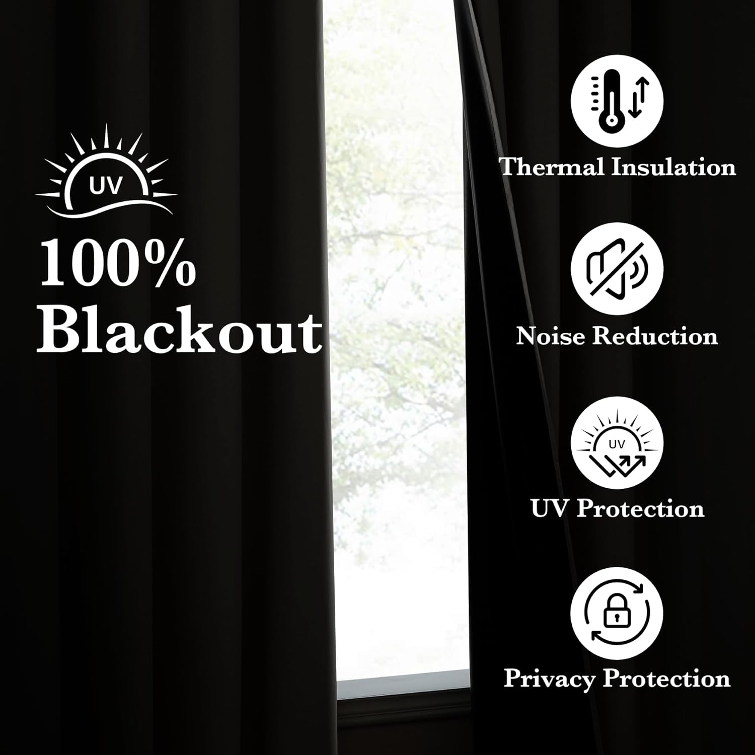- 100% Blackout: These full blackout curtains are designed with a black coating liner backing that completely blocks out sunlight and harmful UV rays. They create a dark environment, allowing you to enjoy a restful sleep even during the day.