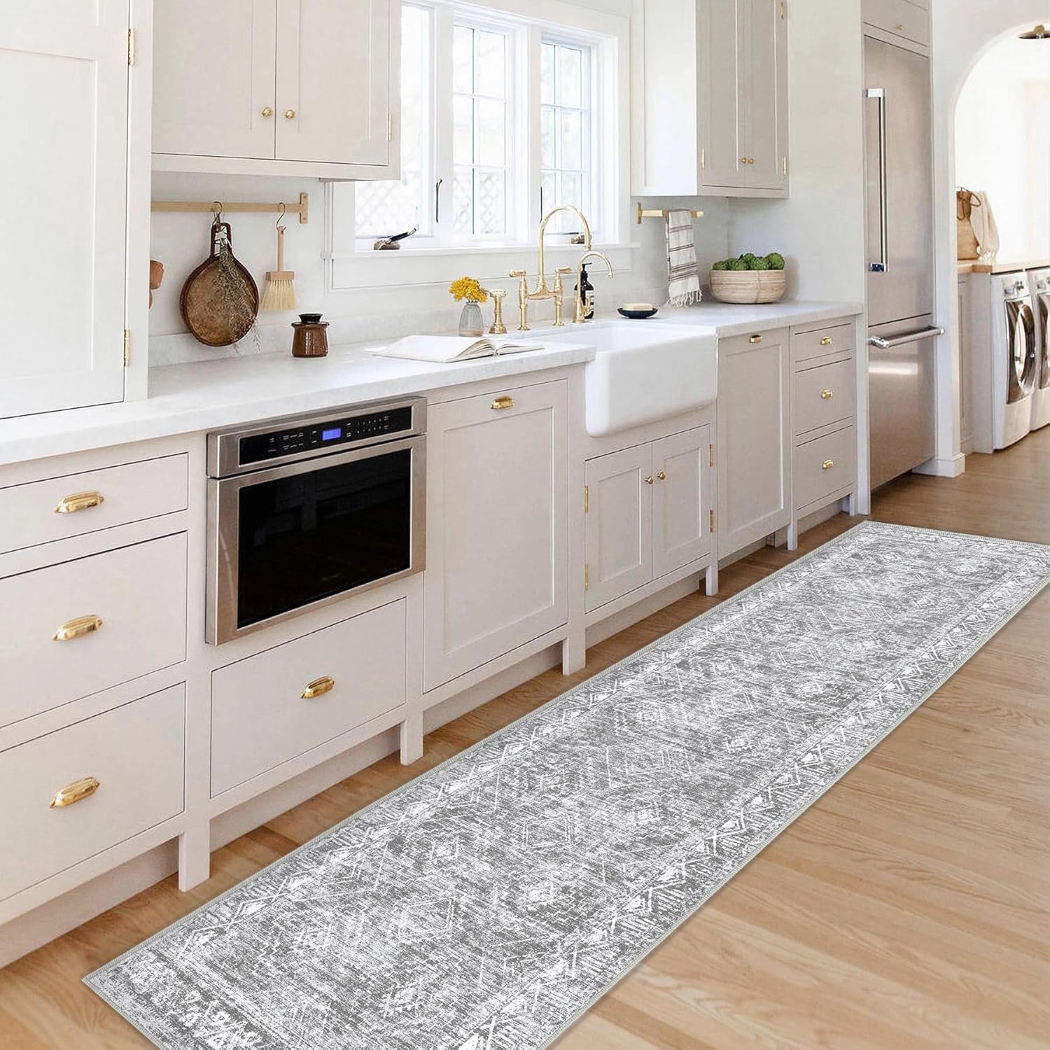 Moroccan Runner Rug 2x6 - Washable Boho Geometric Rugs Non-Slip Entryway Rug, Soft Neutral Farmhouse Runners for Hallway Bedroom Bathroom Laundry Staircase Foyer (2 x 6, Grey)