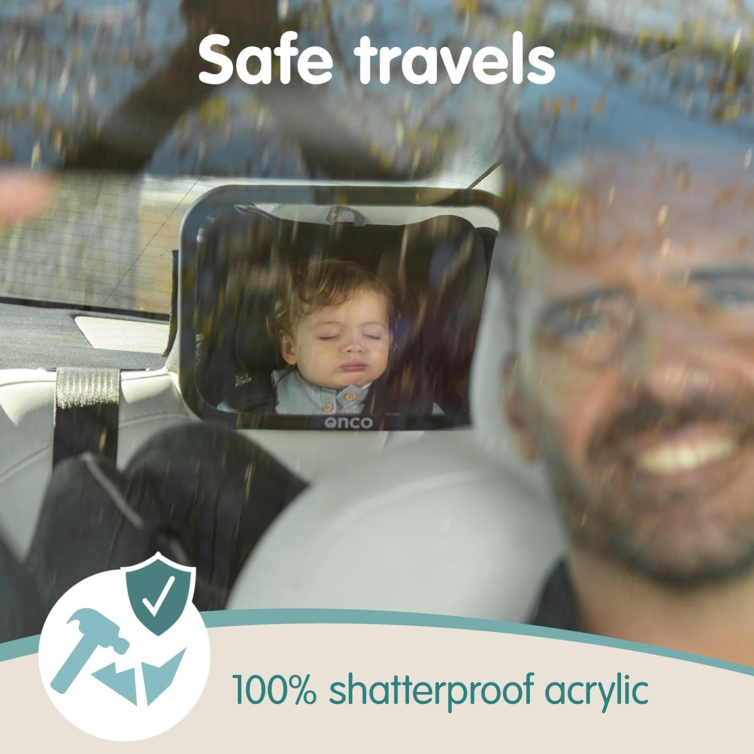 - SHAKE- & SHATTERPROOF - Made from 100% shatterproof plastic and featuring a non-slip base and sturdy strap fastenings, this baby car seat mirror firmly stays in place without wobbling.