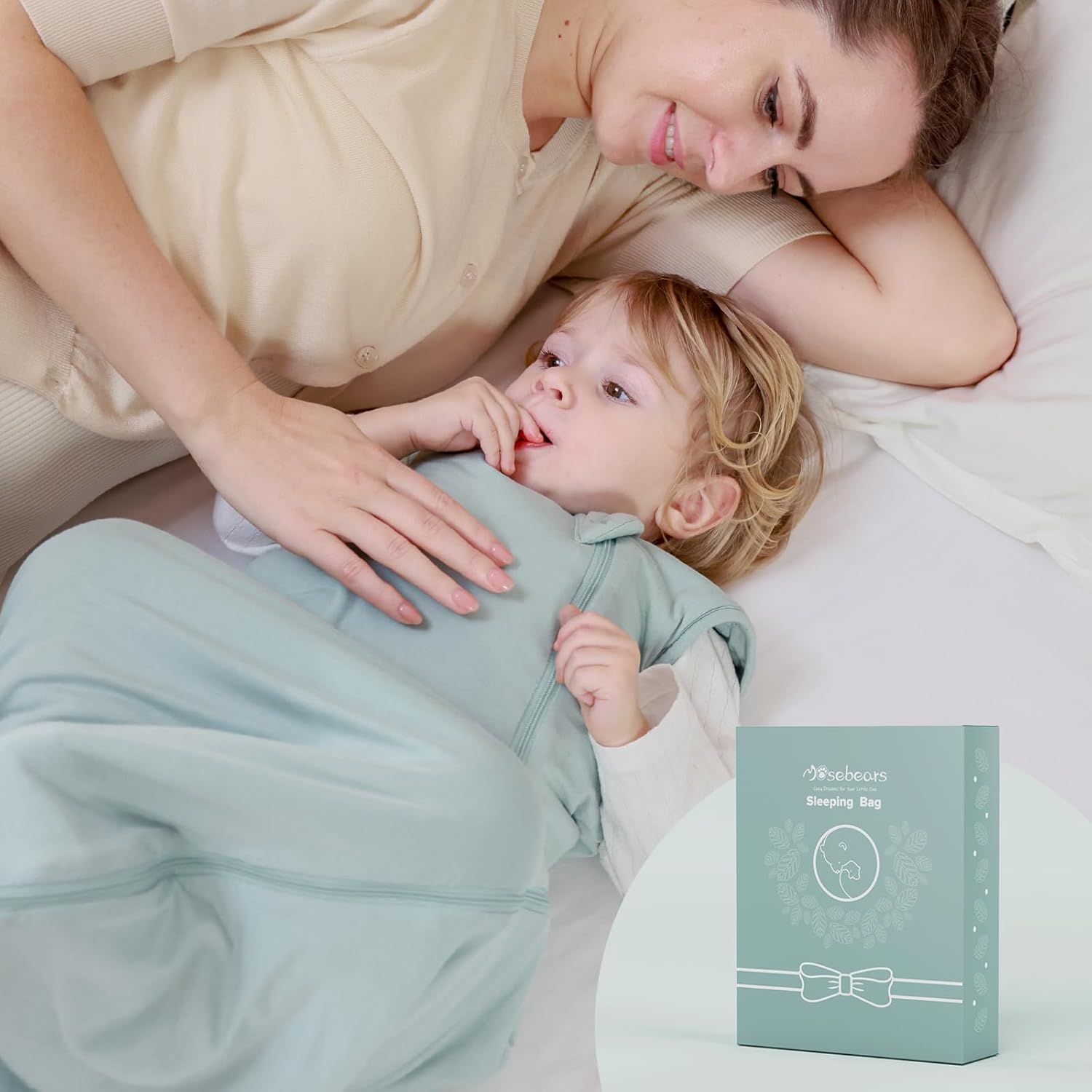 Mosebears Unisex Baby Sleep Sack 1.0 TOG, Supersoft Rayon Made from Bamboo Wearable Blanket with 2-Way Zipper (Sage&Green,0-6 Months)