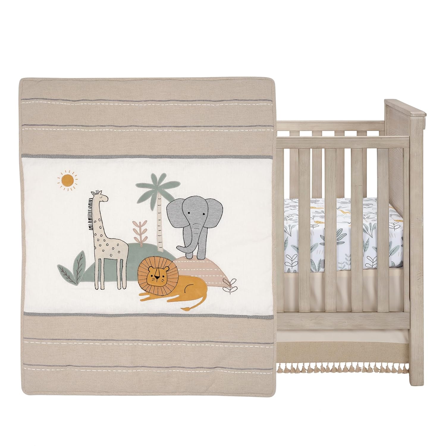 Lambs & Ivy Jungle Adventure Linen/Cotton 3-Piece Nursery Baby Crib Bedding Set